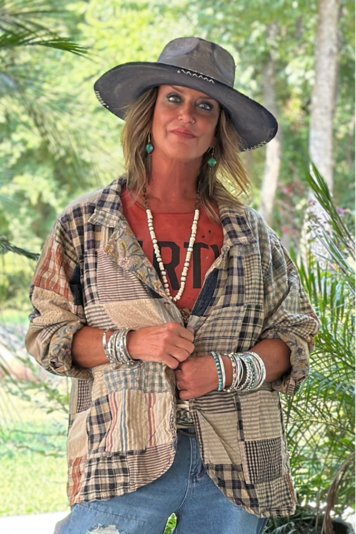 Lightweight jacket which is perfect for our transpersonal weather. Layer it up with the Patched Up Skirt or the Traveling On Pant.