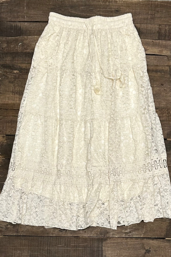 Introducing the bohemian Romantic Views Skirt that is a Tiered skirt with drawstring tassel ties. Pair this back with any of our Moon Dance Tees or the gorgeous Always Yours Top in Parchment for a romantic dreamy look.