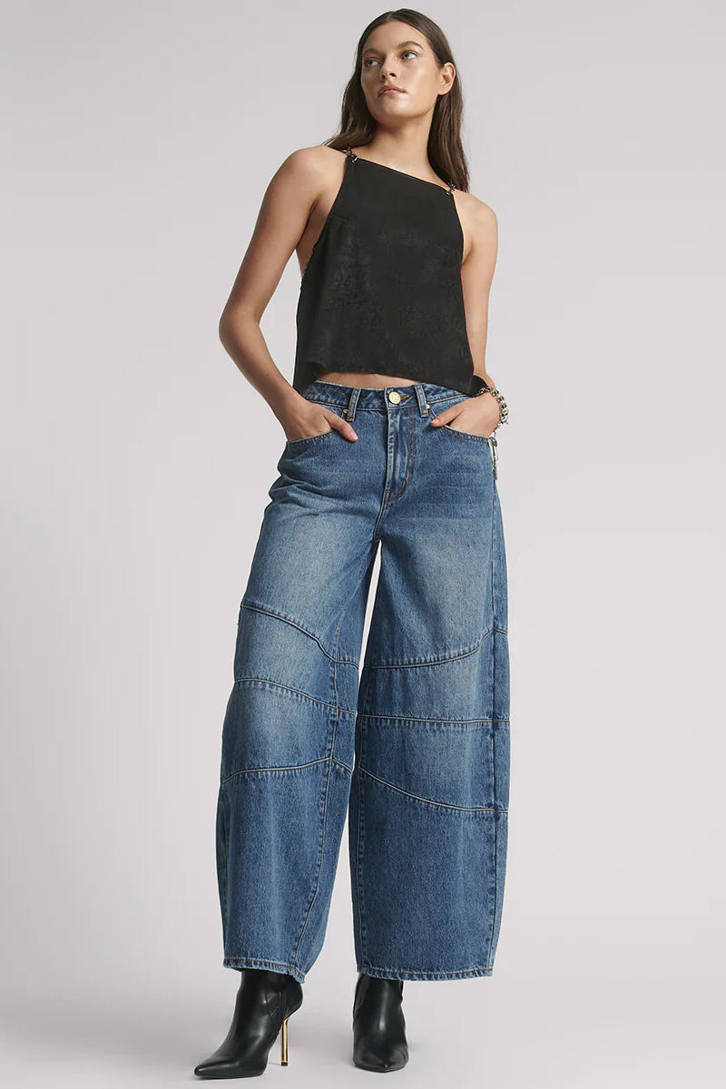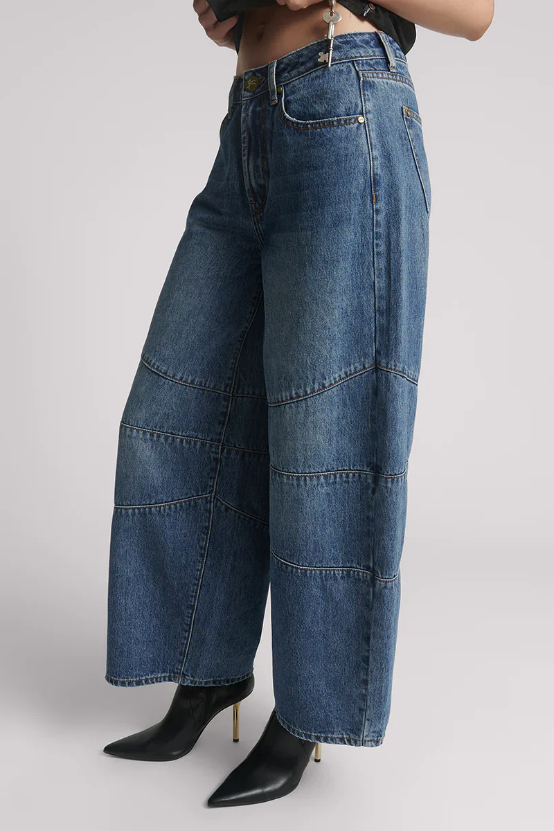 Barrel Mid Waist Wide Leg Denim Jeans | Dirty Blue Love