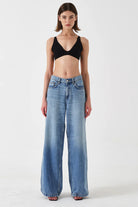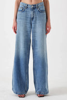 Super high-rise and super wide - made to puddle over your shoes, this one's for true denim lovers.