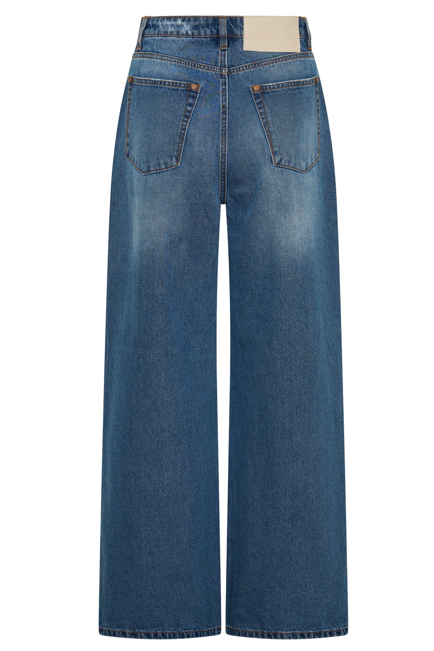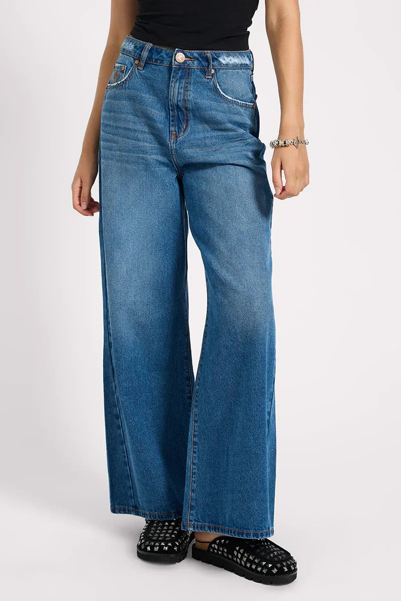 Wear them with a crisp tank or a tucked shirt for a clean, structured contrast — or lean into vintage energy with platforms and a cropped denim jacket. These denim jeans are made to stand tall. PACIFICA BLUE is a soft vintage blue denim wash with gentle fading and authentic distressing.