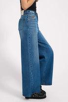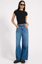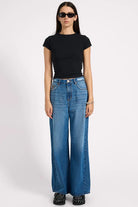 A power move in denim form — the PACIFICA LOVE MACHINES take inspiration from ‘70s disco silhouettes and turn them up a notch. With a flattering high waist and exaggerated super wide leg, they bring volume, attitude, and movement to every step. A touch of distressing at the hem gives them that lived-in feel without losing polish.