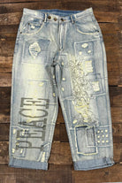 The Peace and Love Jeans are a light weight cotton denim construction with an adjustable waist band and also multiple button choices for the perfect fit. As you have come to expect the jeans are loaded with details such as fraying, stitching, and paint splatters for a vintage look and feel. These jeans are deliberately made to appear vinta. They are a relaxed straight leg shape with great length in the leg. You can wear them uncuffed for a versatile boyfriend style.