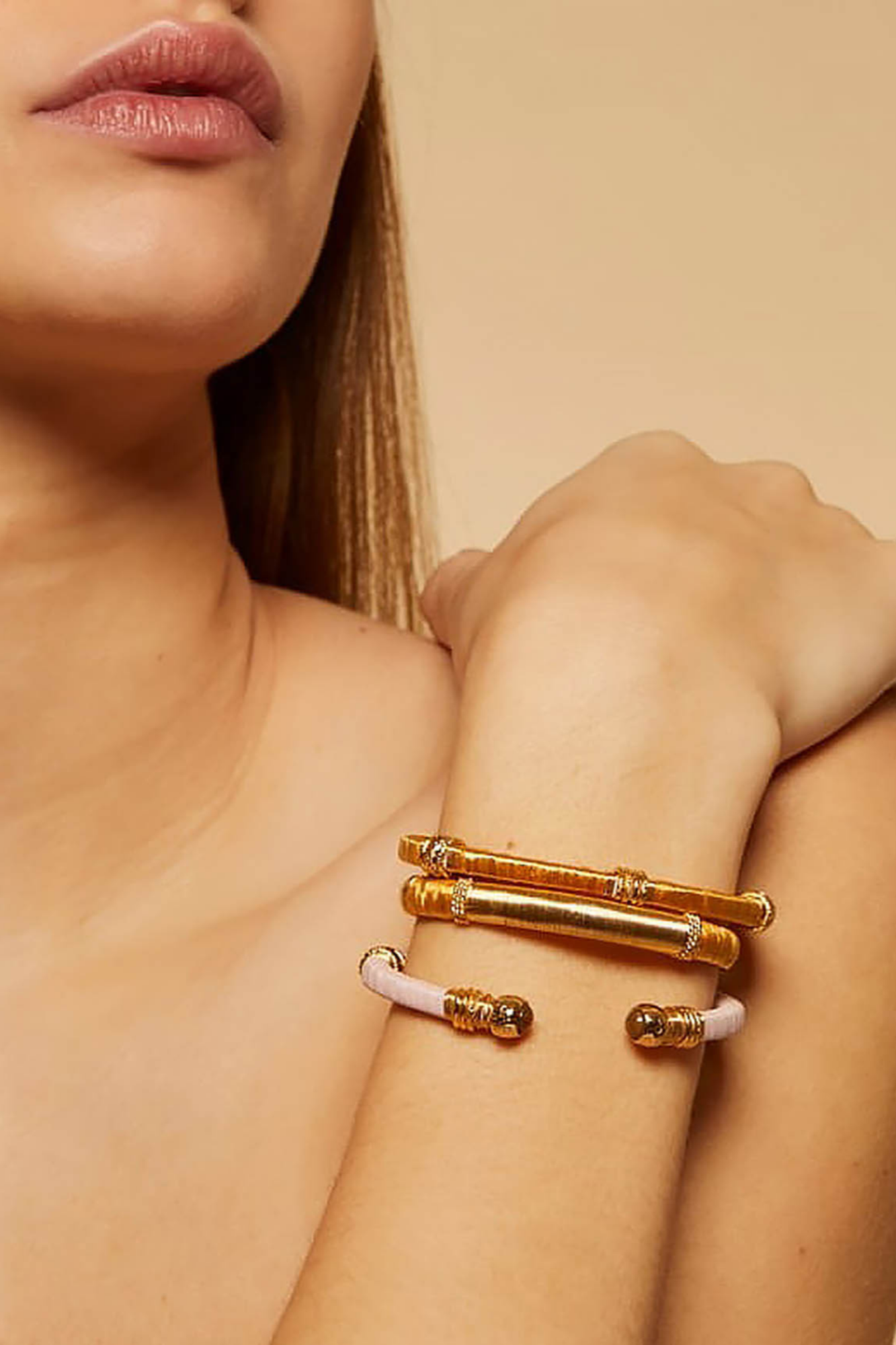 The Macao bracelet is the perfect way to add a touch of luxury and sophistication to any look. Crafted from gold plated metal and adorned with luxurious coloured threads and chains, it's a timeless accessory to elevate your wardrobe. Adjustable in size to suit any wrist, it's a modern classic perfect for adding a subtle hint of glamour and elegance.