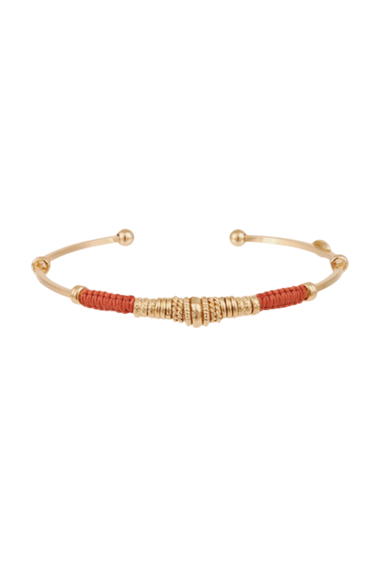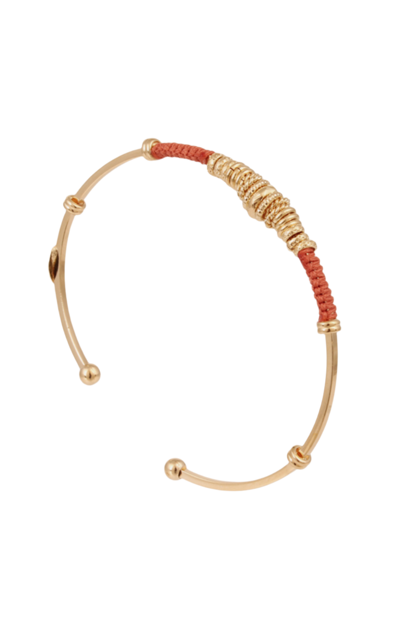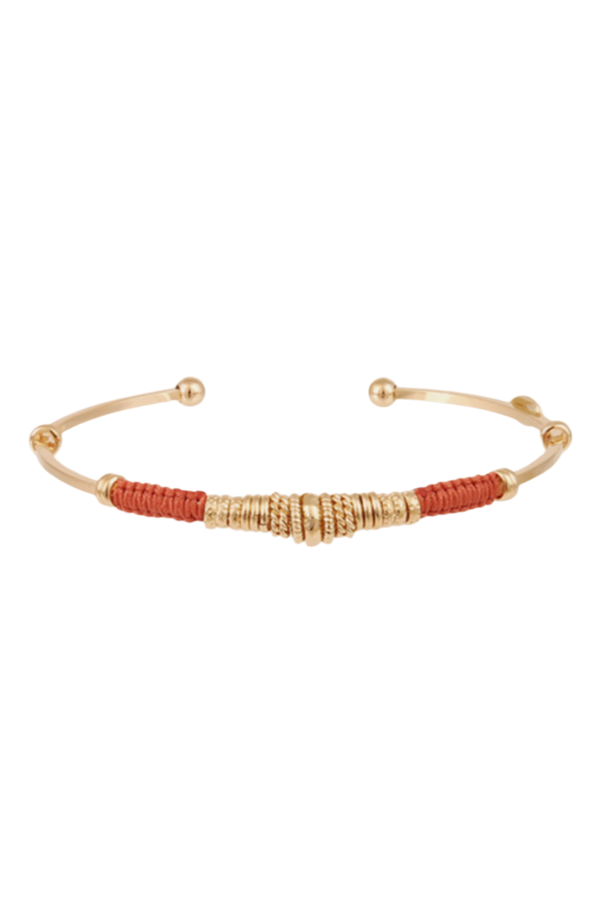 Make a statement with the Gas Zizanie Gold / Orange Cuff!  Featuring a gold-plated bangle, wrapped in part by multicolour cotton threads, this luxurious and adjustable accessory is perfect for creating a sophisticated and exclusive arm candy. Stack it with other bracelets for a stylish summer look.