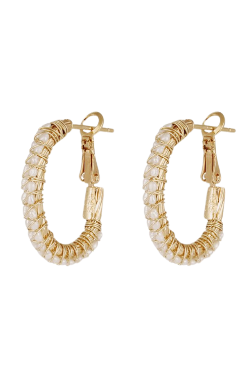 • Gold plated creole earrings with pearls and metal wire rolled.