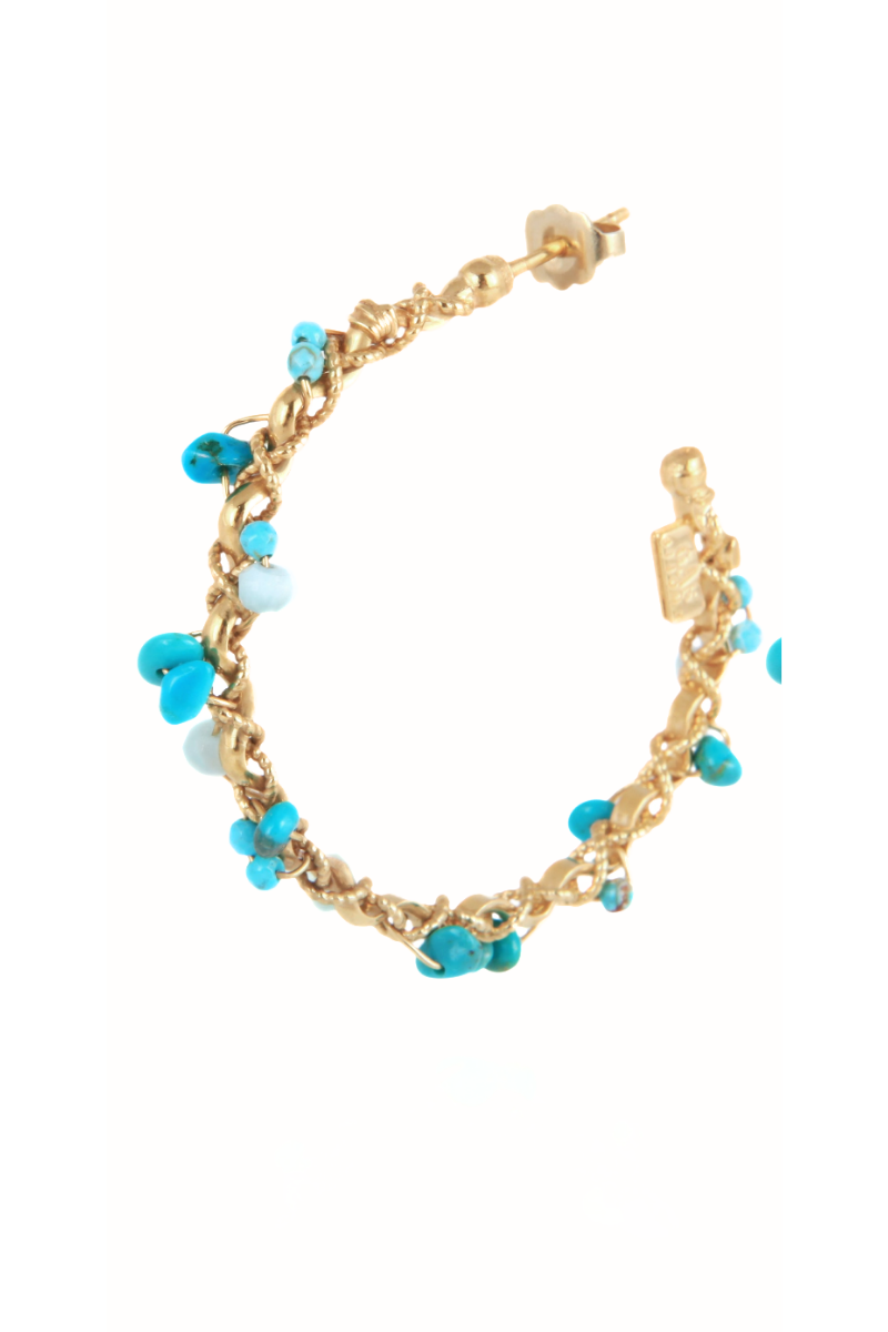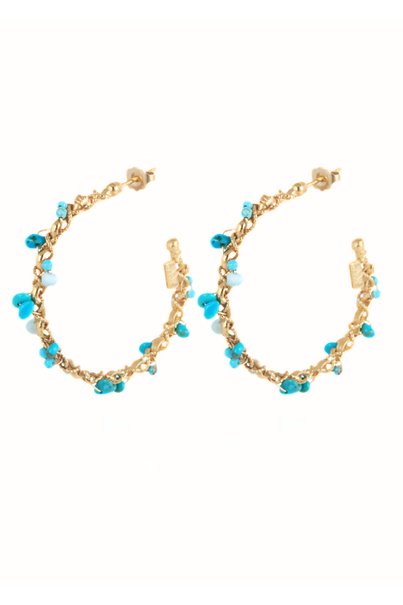 Gold plated hoop earrings adorned with delicate gemstones beads.