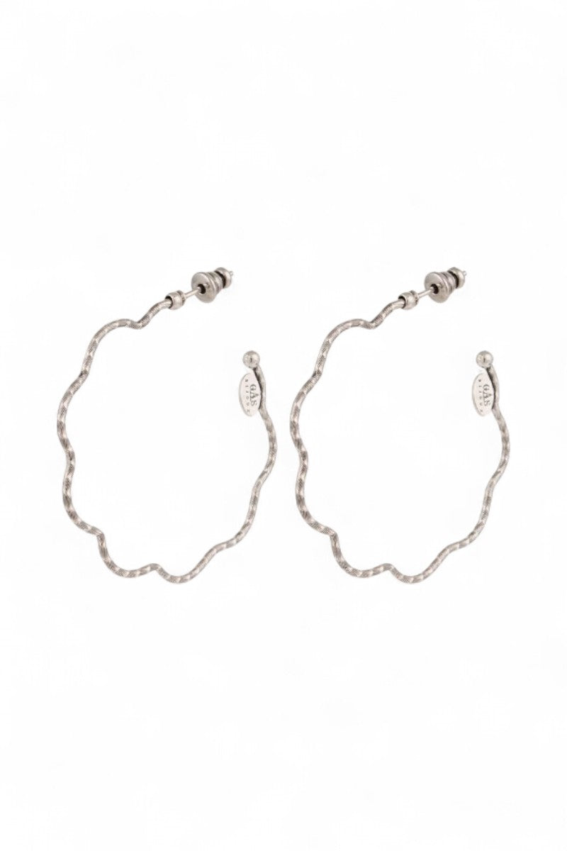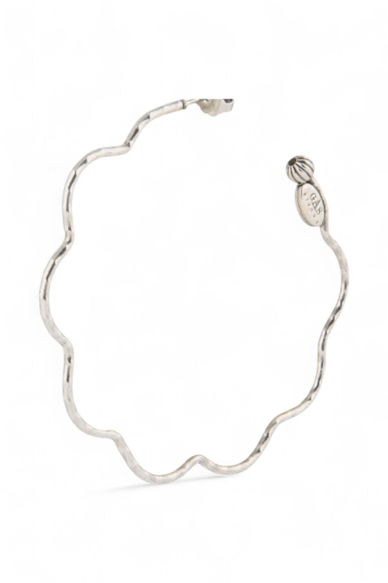 Delicate silver-plated creoles, sublimated by hand-crafted striations and hammering. Their refined design captures the light with elegance, adding a sophisticated touch to every outfit. Lightweight and timeless, they embody the excellence of Gas Bijoux savoir-faire for a chic, sublimated look on any occasion.