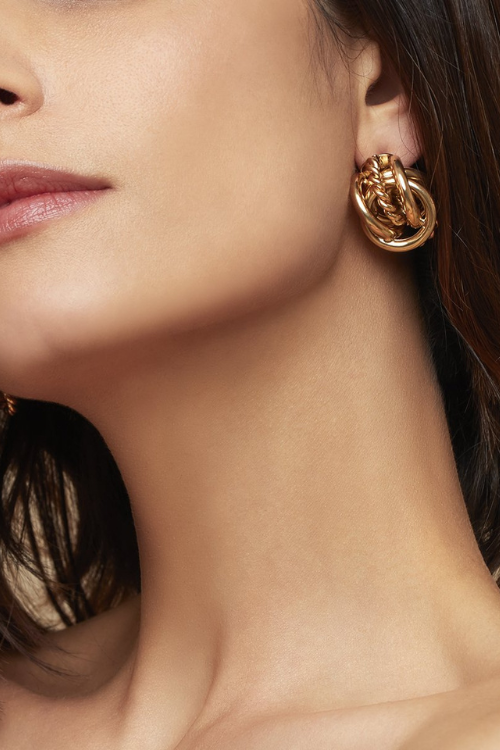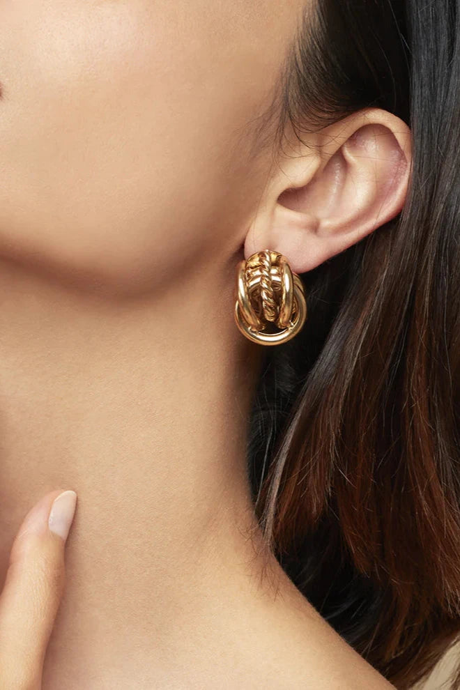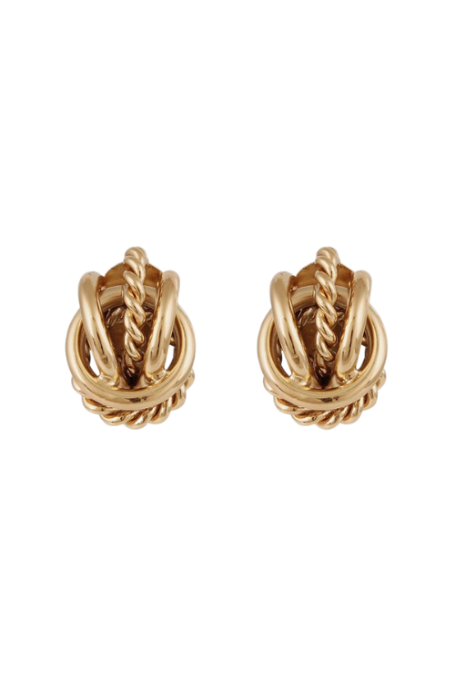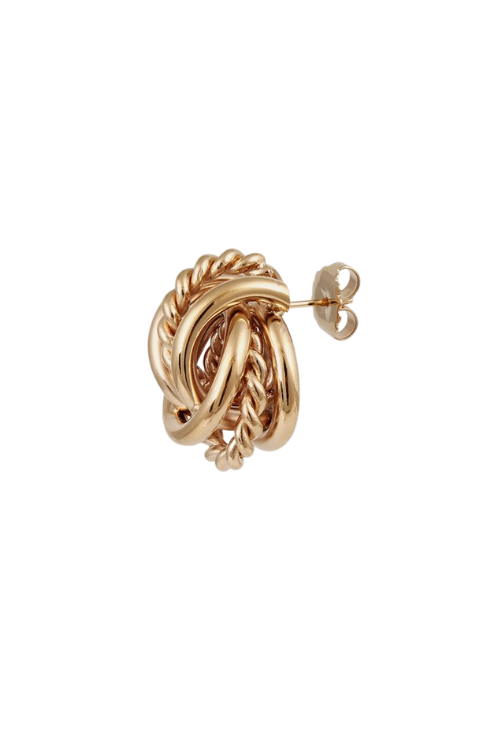 gold plated earrings composed of a clever assembly of smooth and twisted rings.