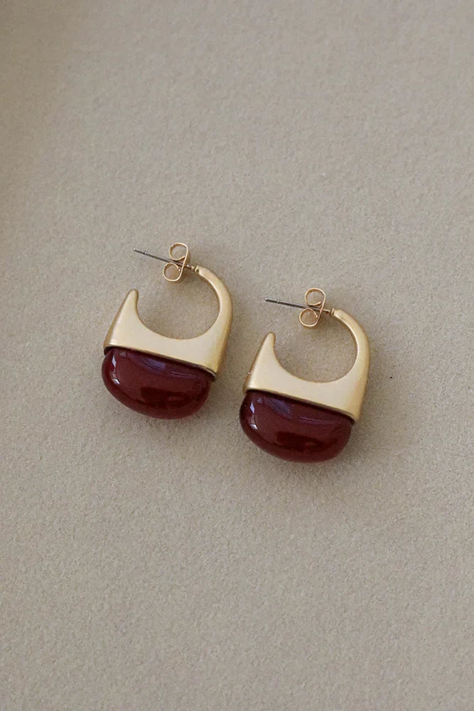 Materials: 18k gold plated brass (nickel free), red resin, stainless steel earring posts