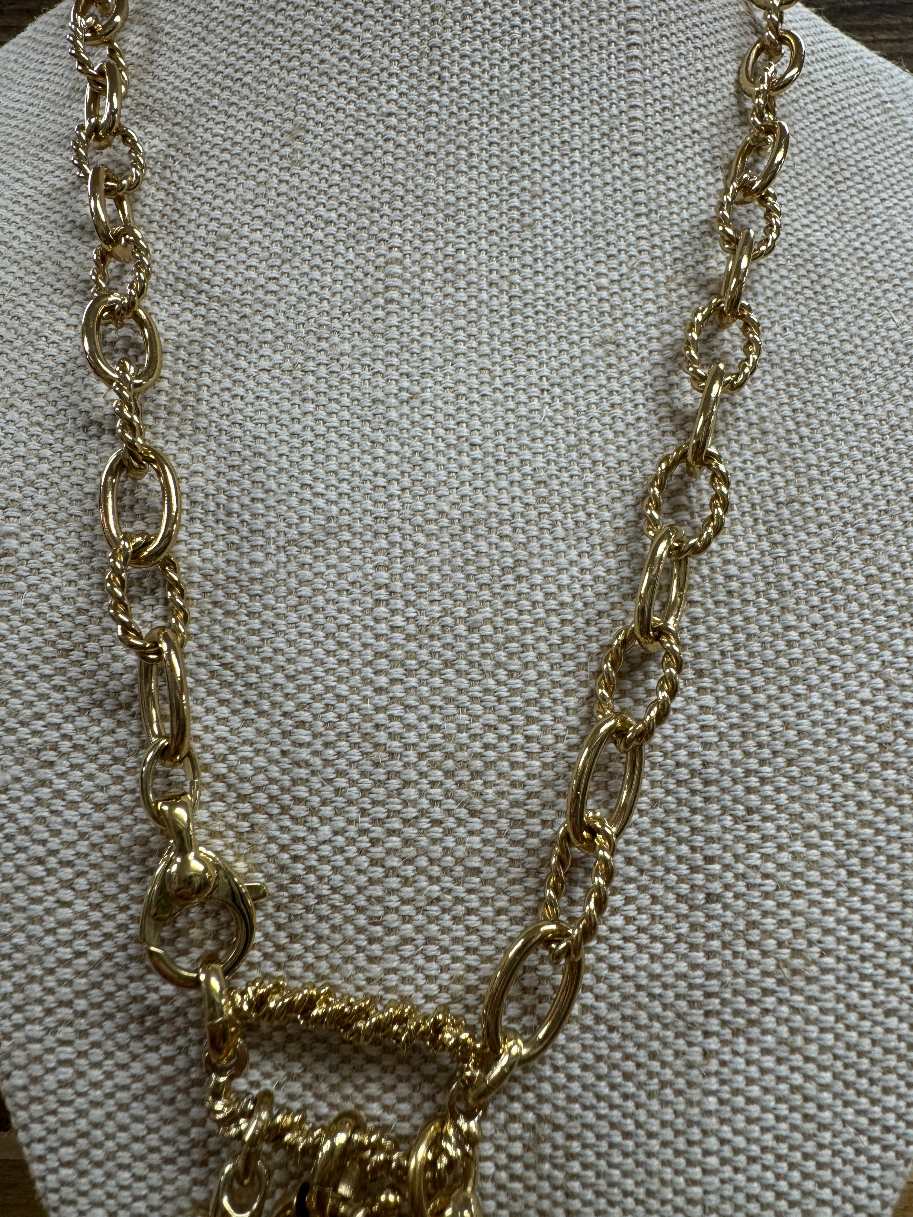 Gold plated Constantine chain allowing to attach 3 charms thanks to 3 different snap hooks.