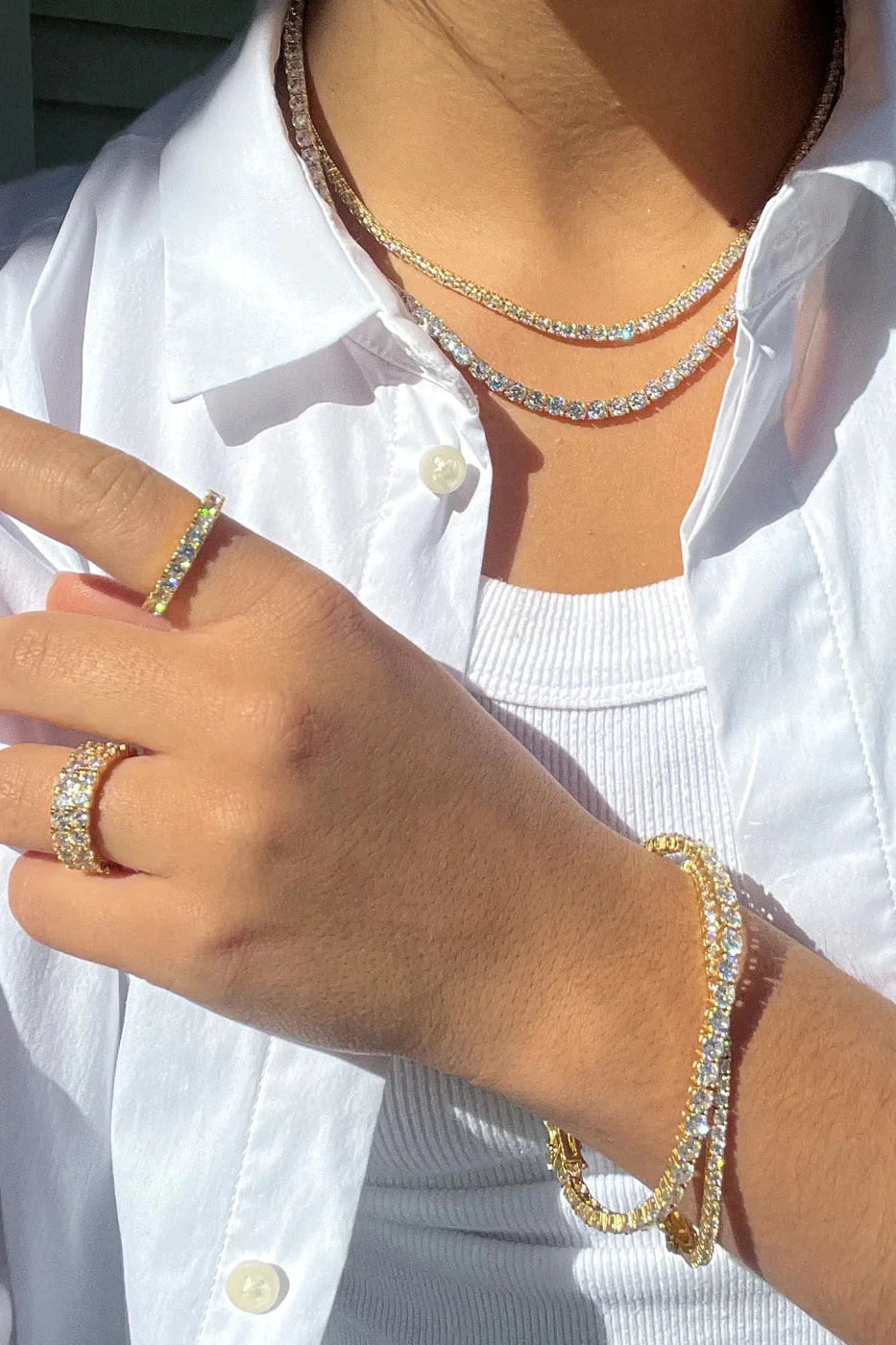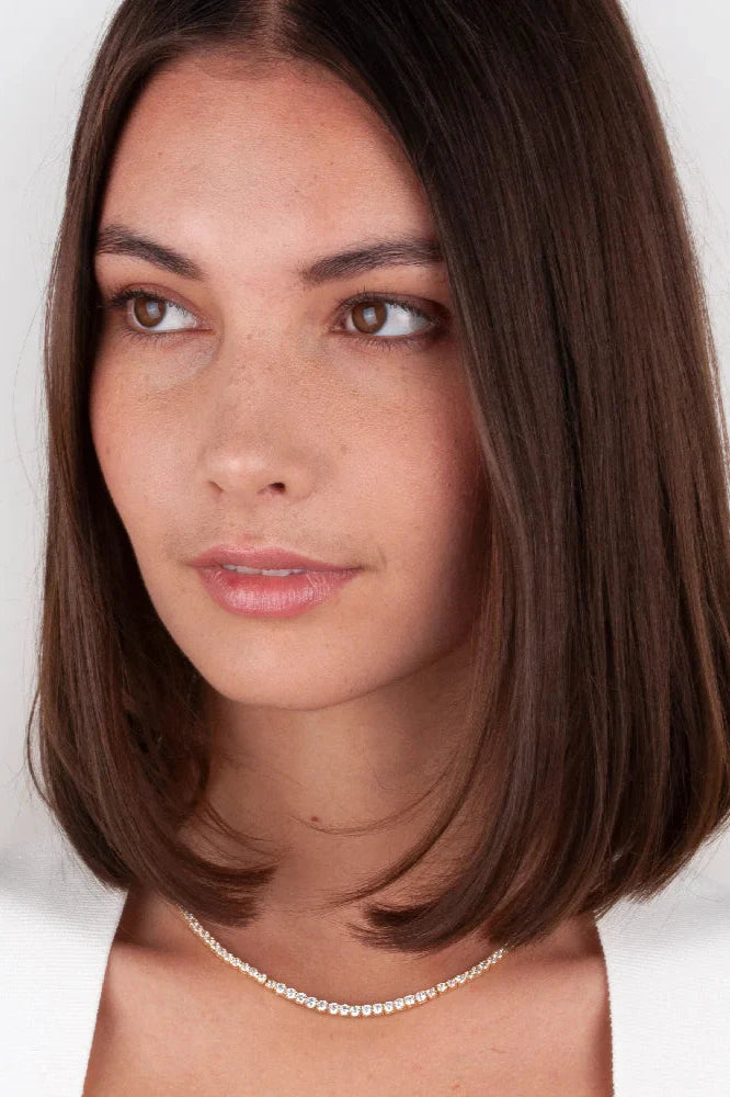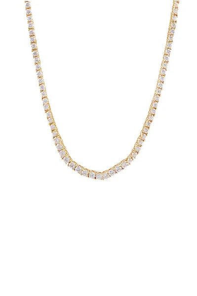This beautiful Tennis Necklace by Bianc features claw set Cubic Zirconia in 18ct gold plated sterling silver.