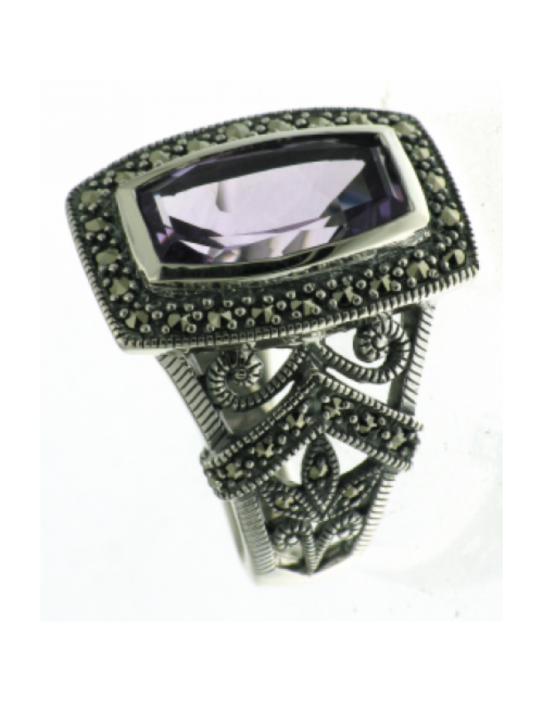 Sterling silver Octagonal Ring. Hand set with marcasite. Features rectangular marcasites. Top measures 15mm approx