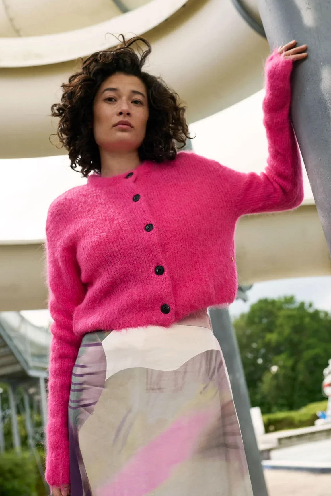 A beautiful cropped cardigan that combines simplicity and elegance. The cardigan features a classic button closure at the front and a soft, comfortable fit that makes it ideal for everyday wear. Perfect for creating a relaxed and stylish look.