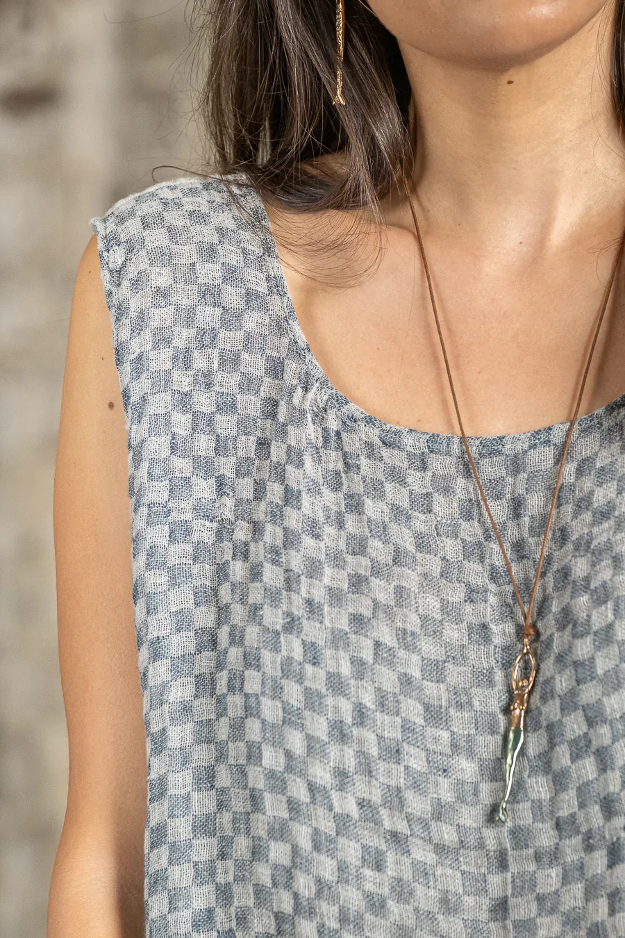 The Canotta Roma in Naturale Mezzo Scacco Venezia is a beautifully versatile piece that embodies Italian elegance and functional design. Crafted from a luxurious fabric with a unique half-check pattern, this top can be worn on both sides, offering two stylish looks in one. Whether paired with coordinating pants or styled on its own, the reversible design ensures maximum versatility, making it a timeless addition to your wardrobe.