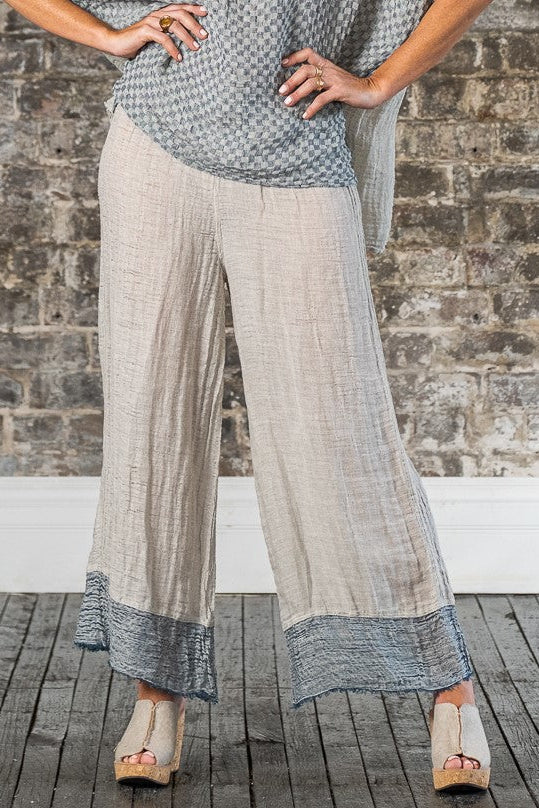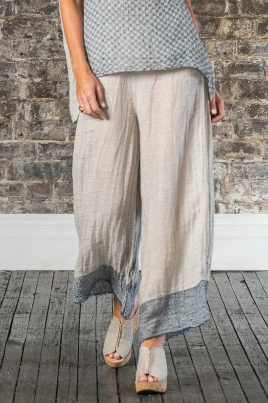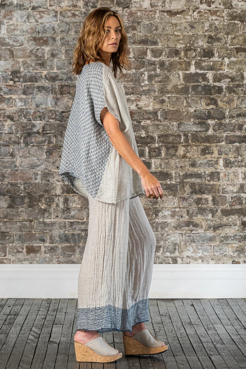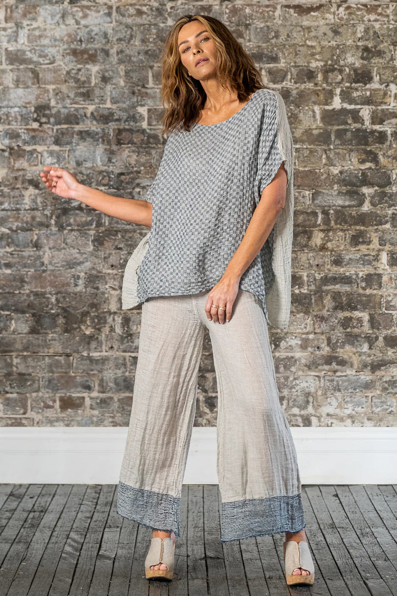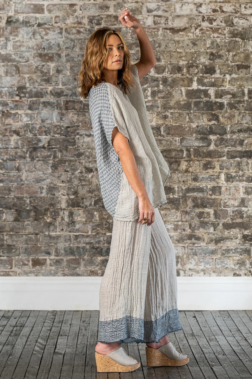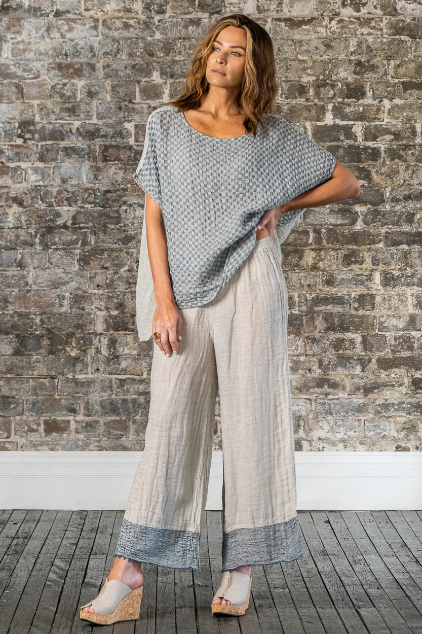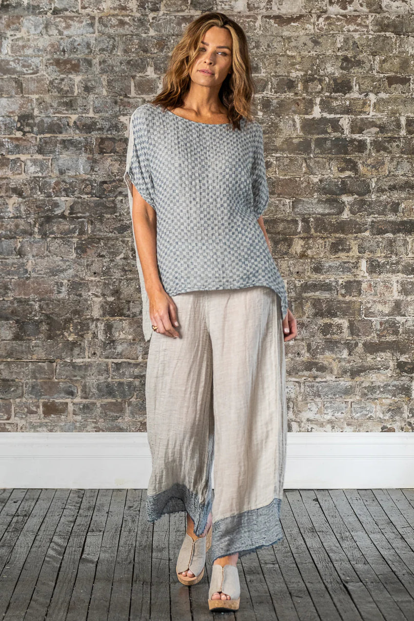 Immerse yourself in the artistry of Italian craftsmanship with the Pantalone Azz in Naturale Garza Venezia. These wide-leg pants embody the essence of laid-back luxury, combining a relaxed fit with the timeless beauty of artisanal design. With its flowing silhouette and meticulously woven texture, this piece is a tribute to the effortless elegance of handmade fashion.
