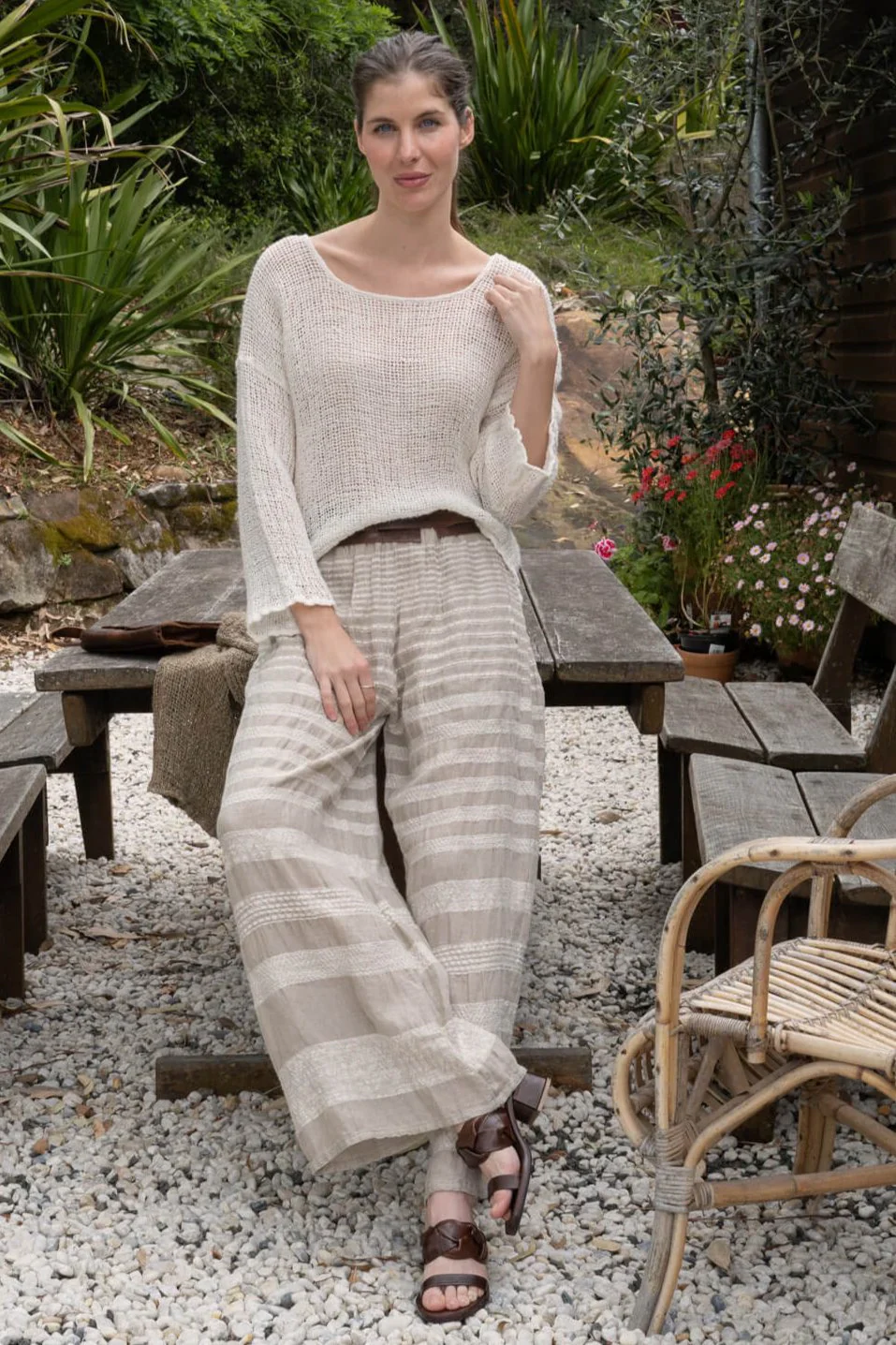 The Pantalone Ermitage in Taglio Ermitage Naturale offers an effortless blend of timeless design and artisanal craftsmanship. With its relaxed, flowing silhouette and soft, breathable fabric, these pants are both comfortable and sophisticated. The natural hue complements a wide range of styles, making them an essential wardrobe staple. Perfect for pairing with matching tops or styling individually, they embody the elegance of Italian design.