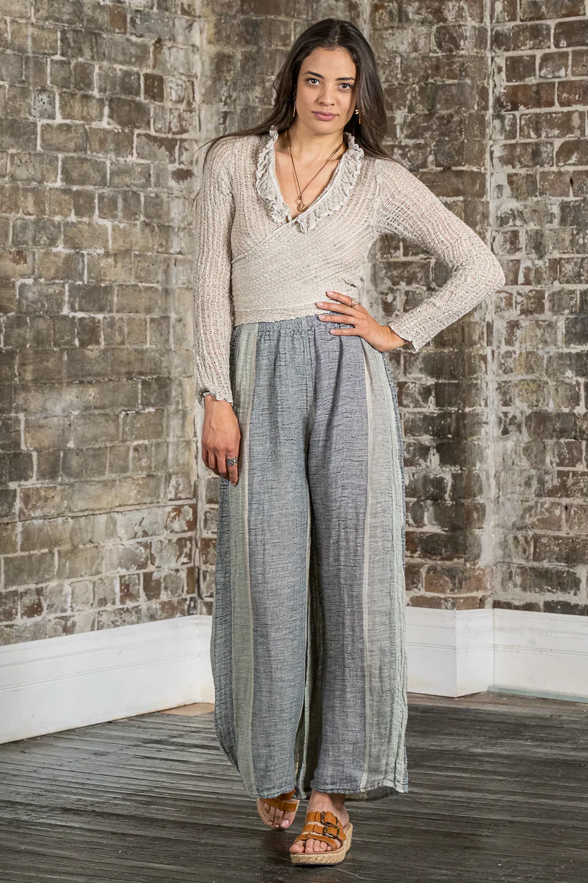 The Pantalone Rock in Naturale Garza Pompei captures the essence of relaxed sophistication, embodying the timeless elegance of Italian coastal living. Crafted from delicately textured fabric, these wide-leg pants are effortlessly versatile, offering a flattering fit and unparalleled comfort. Perfect for understated, chic dressing, they evoke the signature ease and refinement of La Bottega di Brunella.