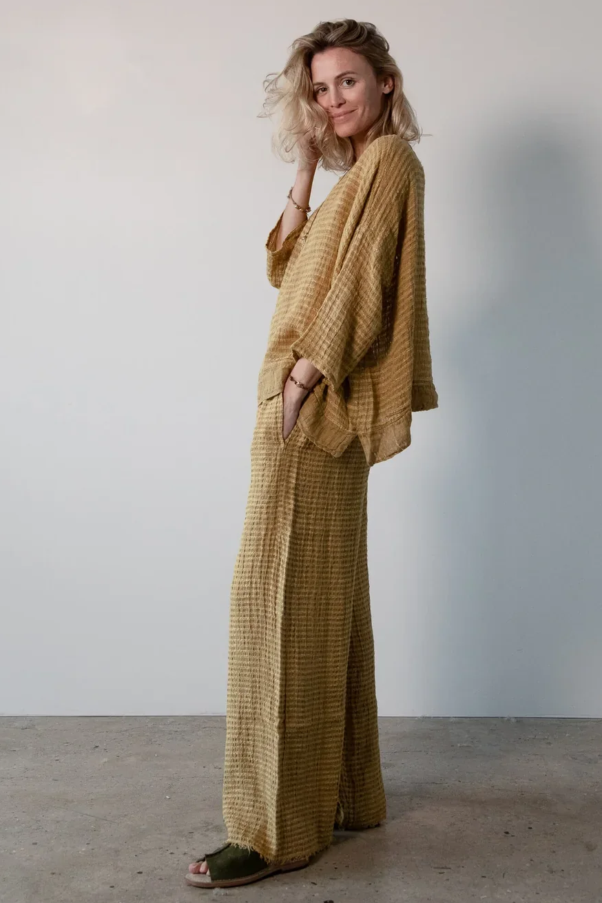 The Pantalone Tritone Tela Uffizi Deserto brings together understated luxury and timeless Italian craftsmanship. In a rich, warm desert hue, these pants feature a beautifully tailored wide-leg silhouette that combines effortless style with comfort. Crafted from a slightly heavier yet breathable fabric, they offer a structured fit perfect for both relaxed and polished looks, making them a versatile addition to any wardrobe.