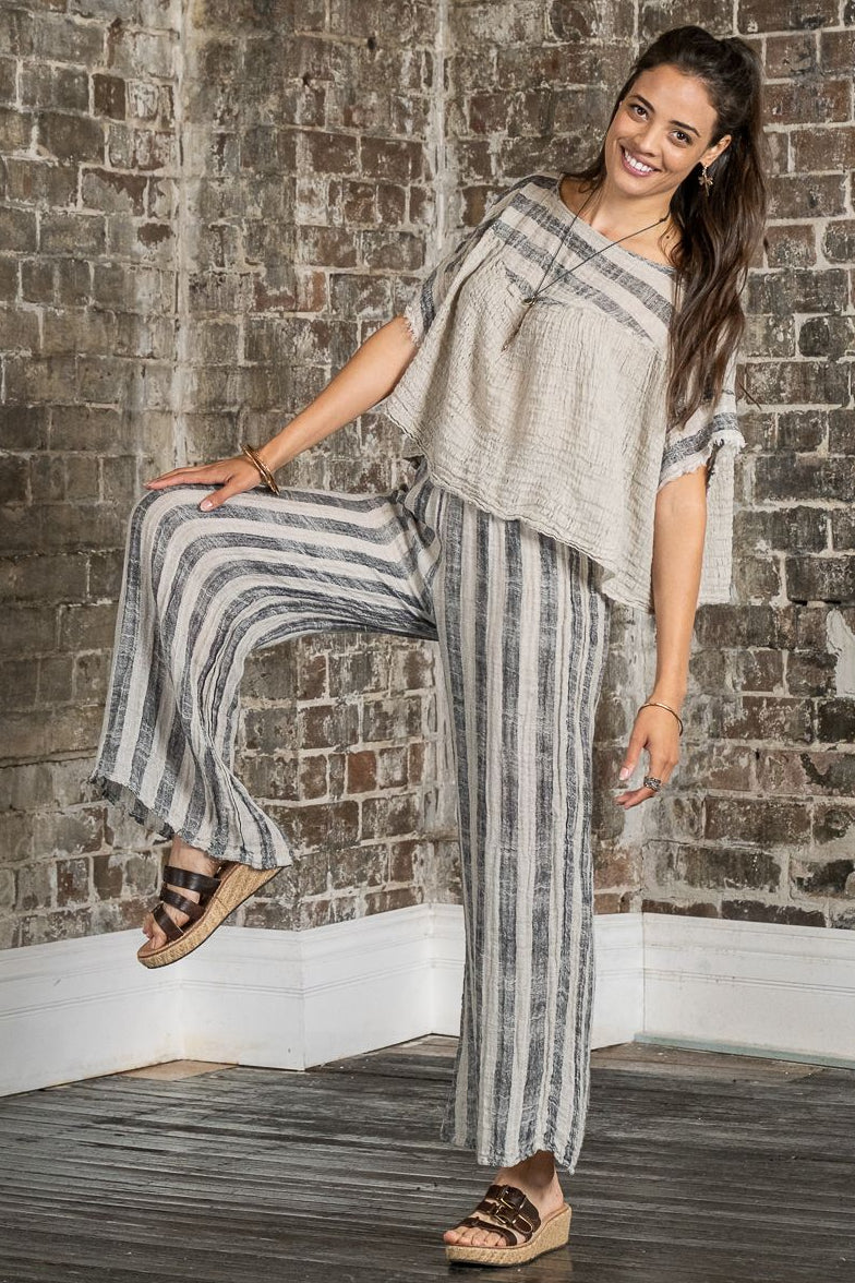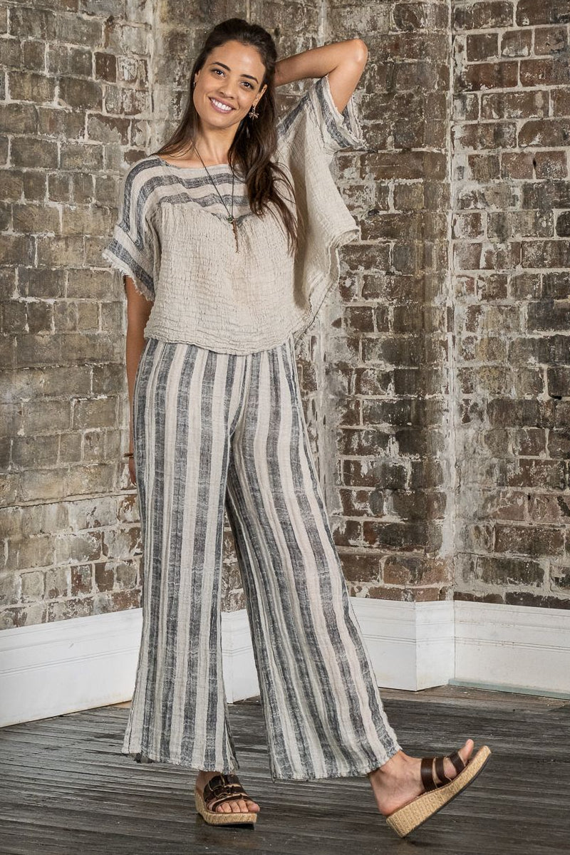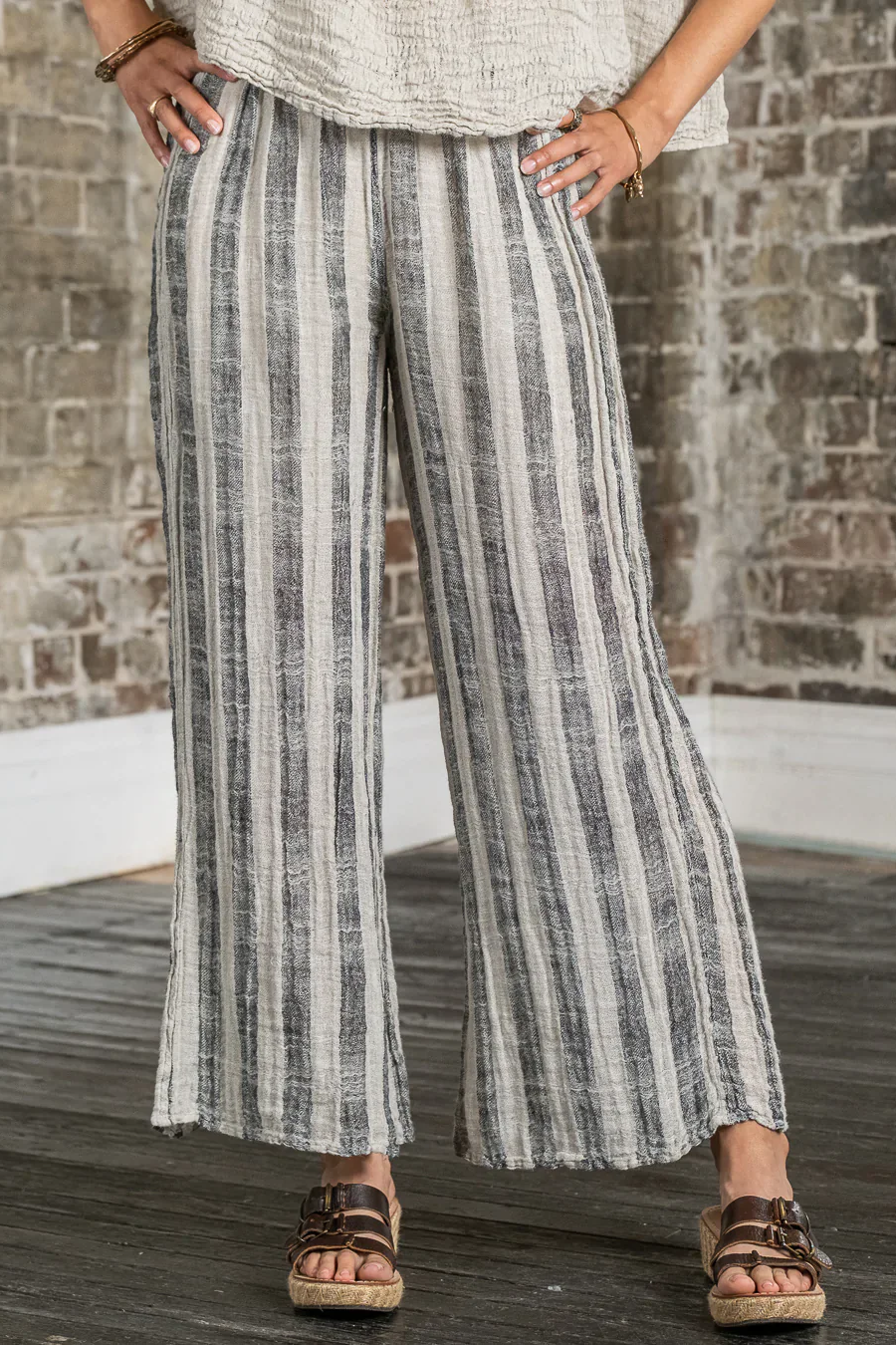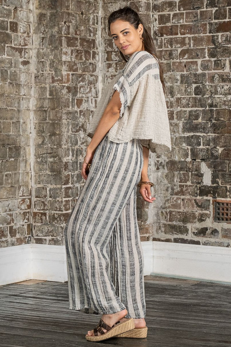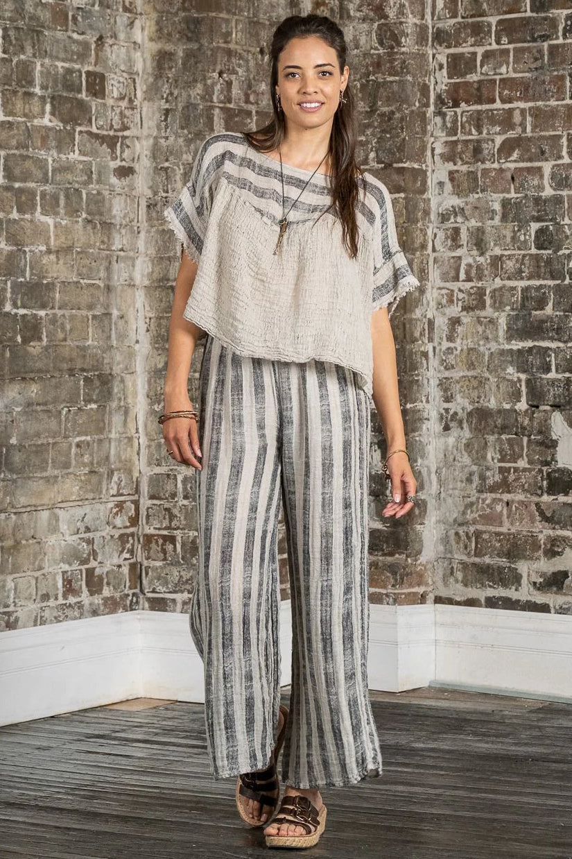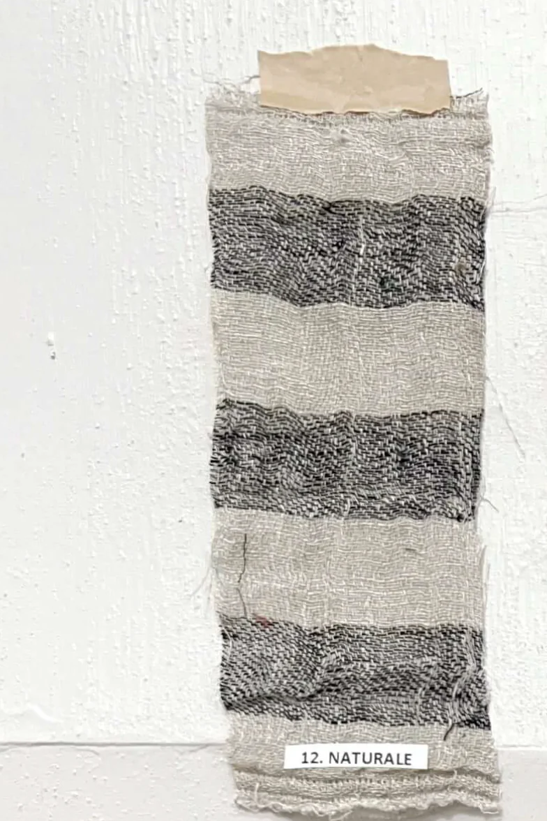 • Handwoven Rigan Agnelli 100% linen Fabric: Soft, breathable, and textured with striking artisanal stripes.