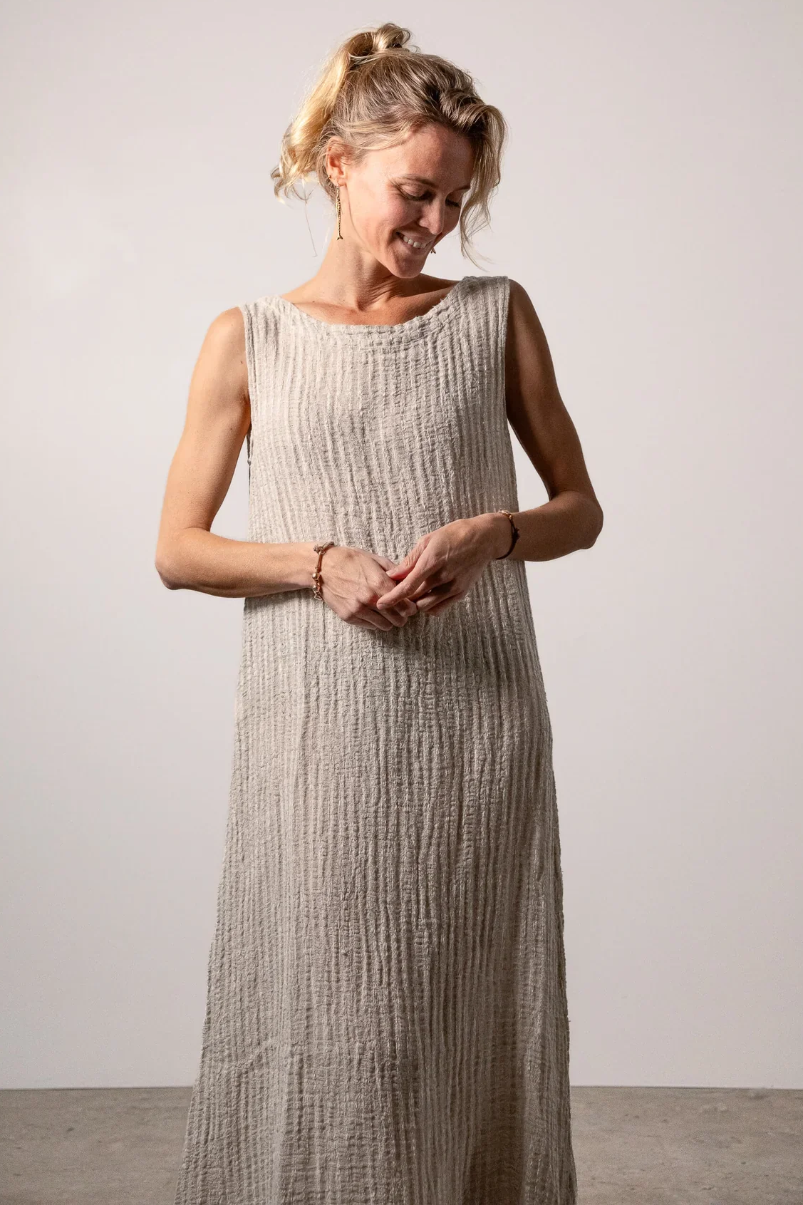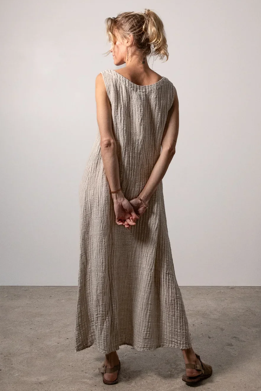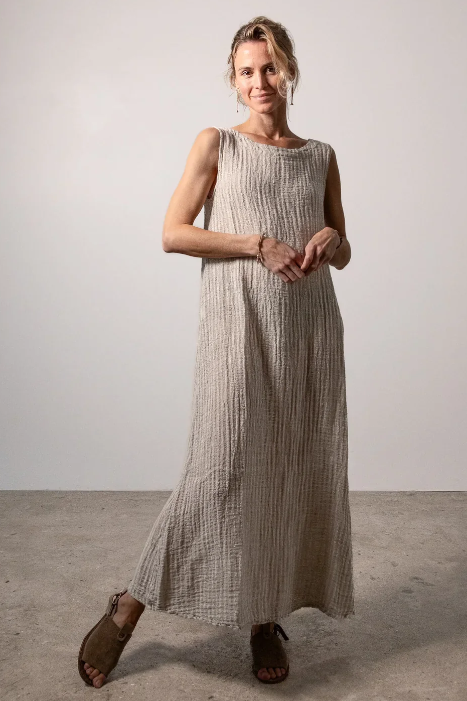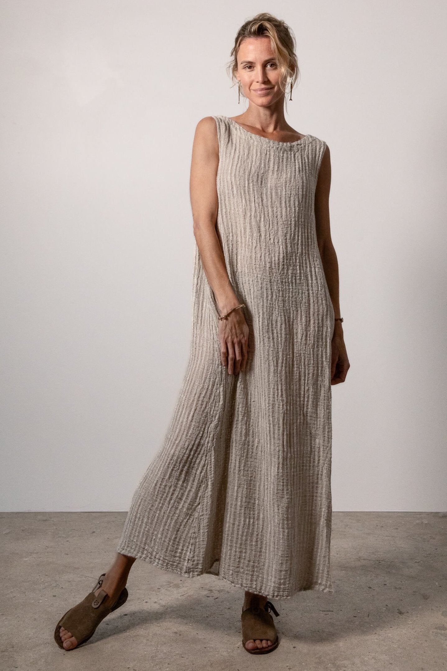 The Vestito Cenacolo Garza Uffizi in Naturale is a beautiful, effortlessly elegant piece crafted from airy gauze fabric. Designed with a relaxed fit, it offers both comfort and refinement. The natural hue enhances its timeless appeal, making it an essential addition to any wardrobe. The dress features:
