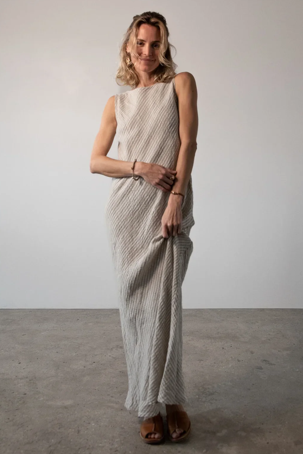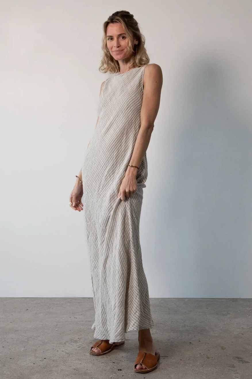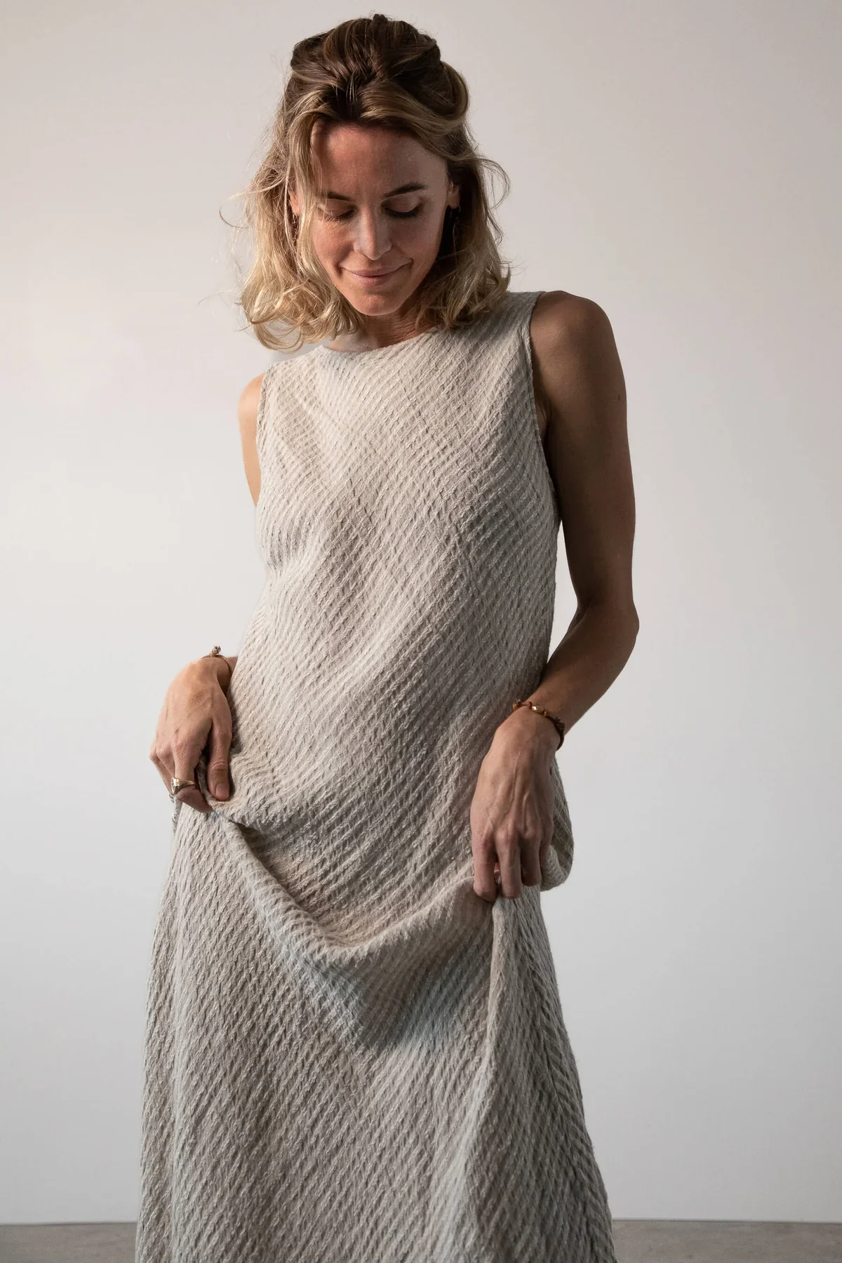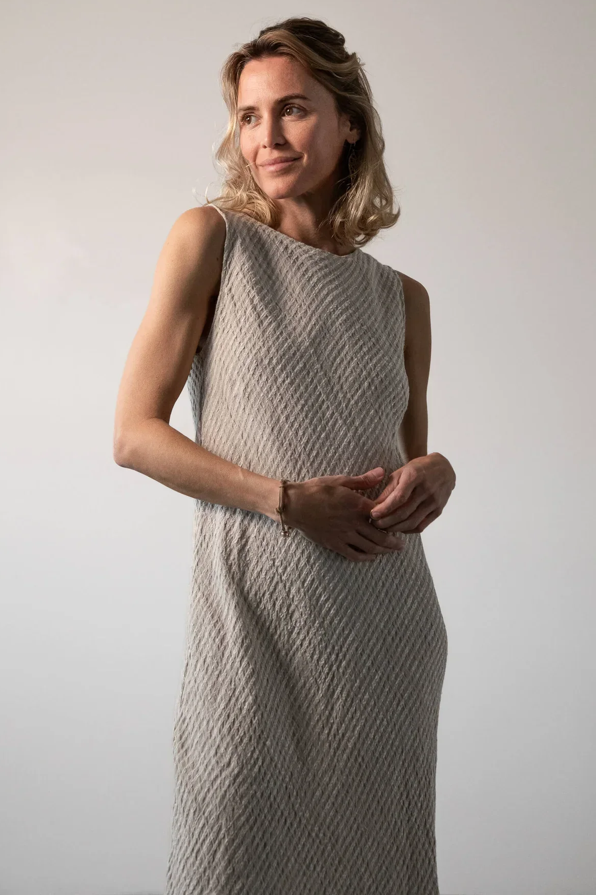 The Vestito Donatello in Tela Uffizi in Naturale is a sophisticated linen dress, carefully crafted in Italy. This piece stands out for its timeless elegance and exceptional craftsmanship, made from 100% natural linen and dyed using natural pigments. Cut on the bias for a flattering fit, it drapes beautifully and offers a soft yet structured silhouette. Perfect for warm weather, its breathable fabric ensures comfort while maintaining a refined, effortless aesthetic.