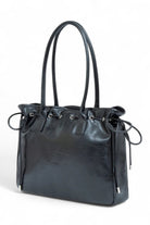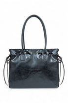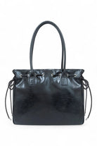 Vegan leather shopper bag with embossed logo detail on the front. Shoulder handles, magnetic closure and interior zipper pocket. This model fits an 18" laptop. The vegan leather used for this style has a worn look.