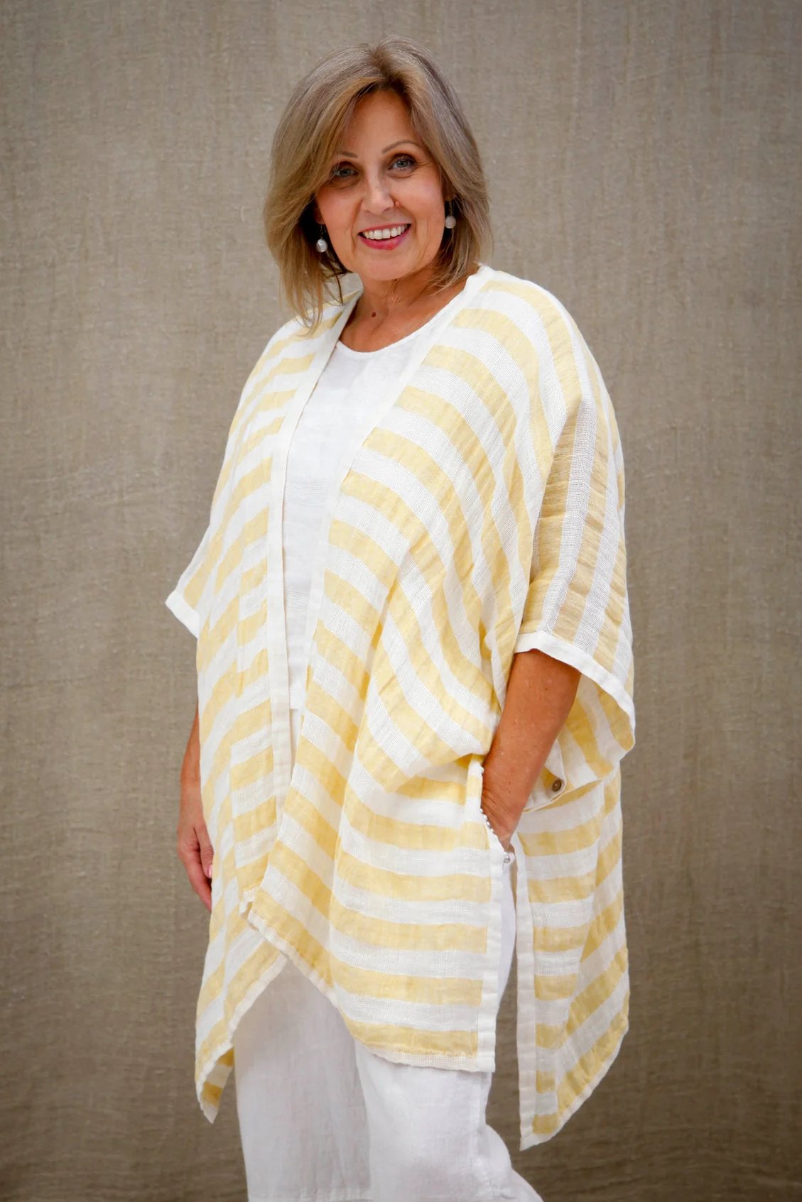Carmen Cardigan | Lemon & White Stripes