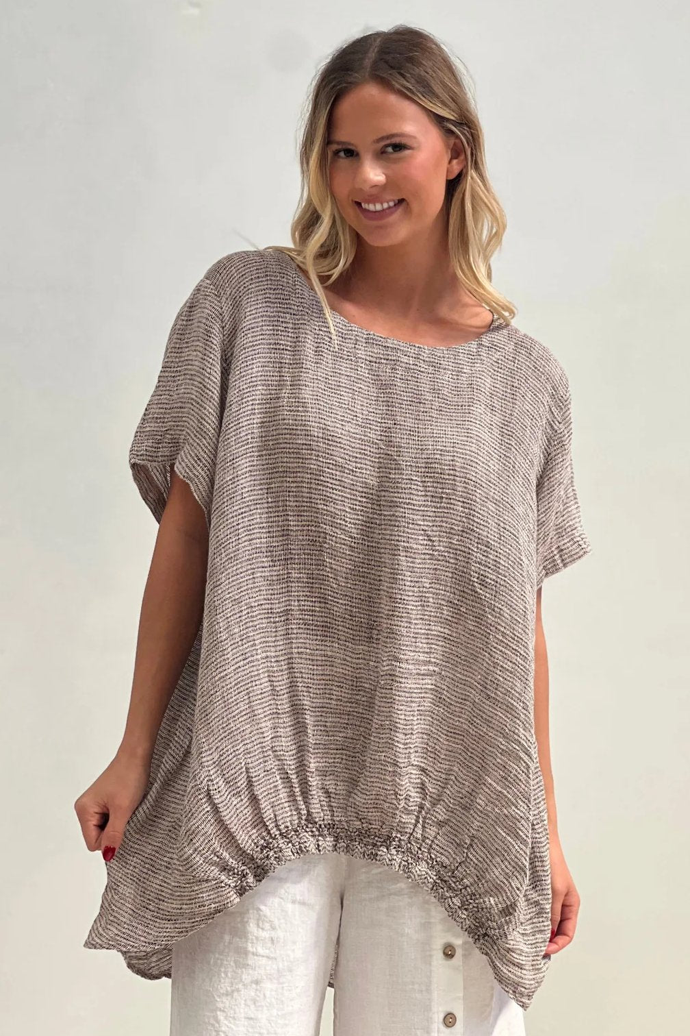 Helene Oversized Top | Black & Pink Woven