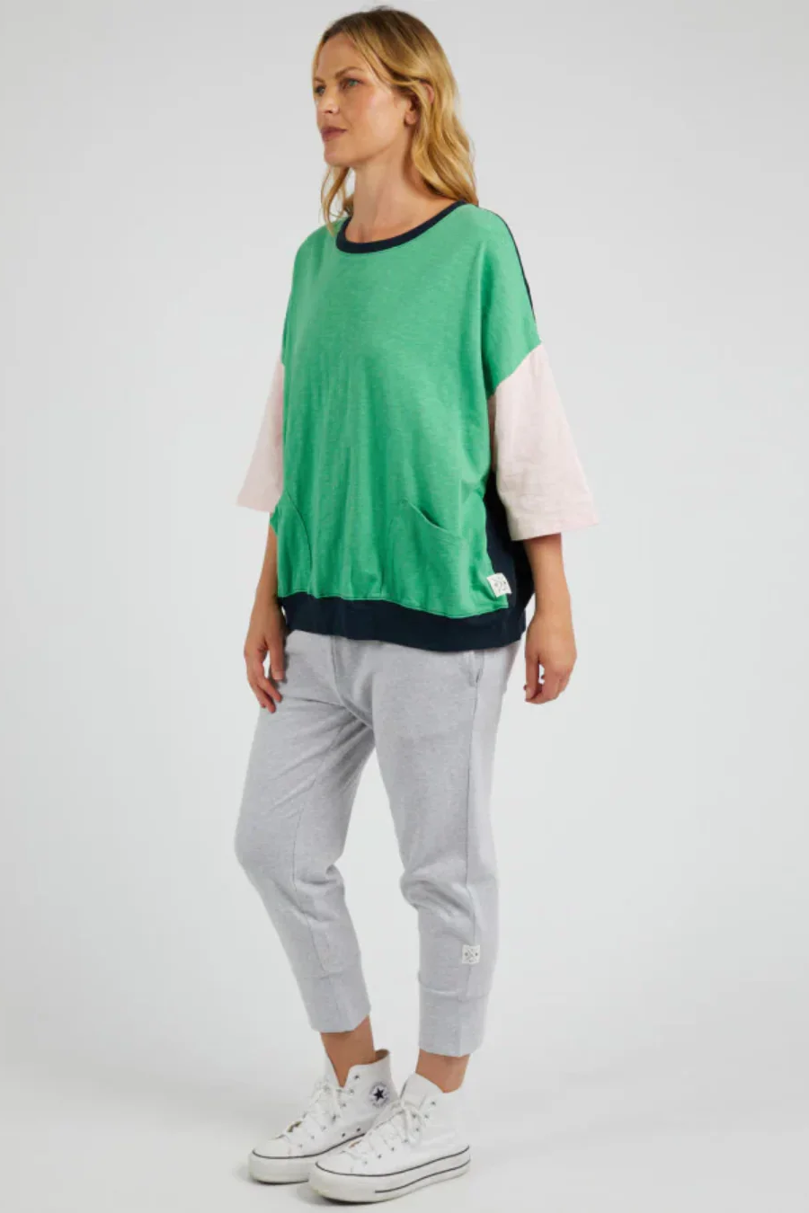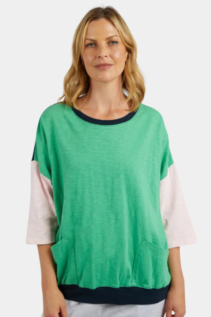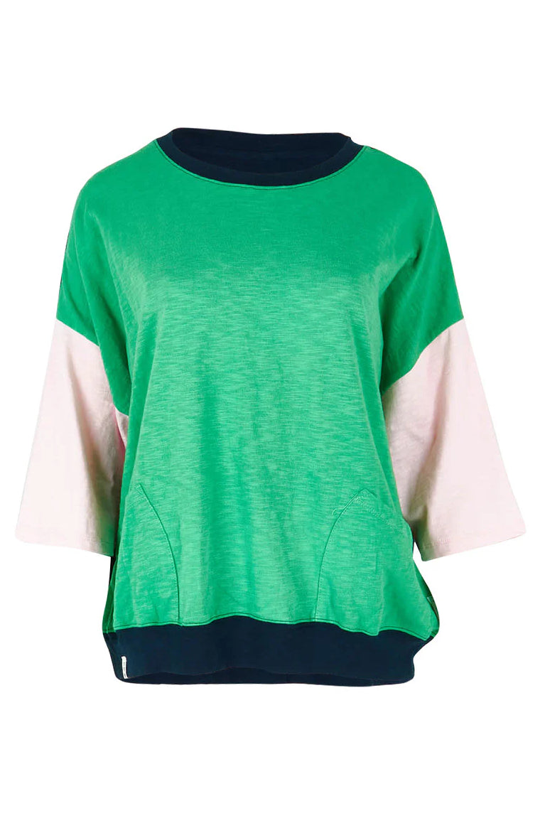 Mazie Colour Block Sweat in Green Briar