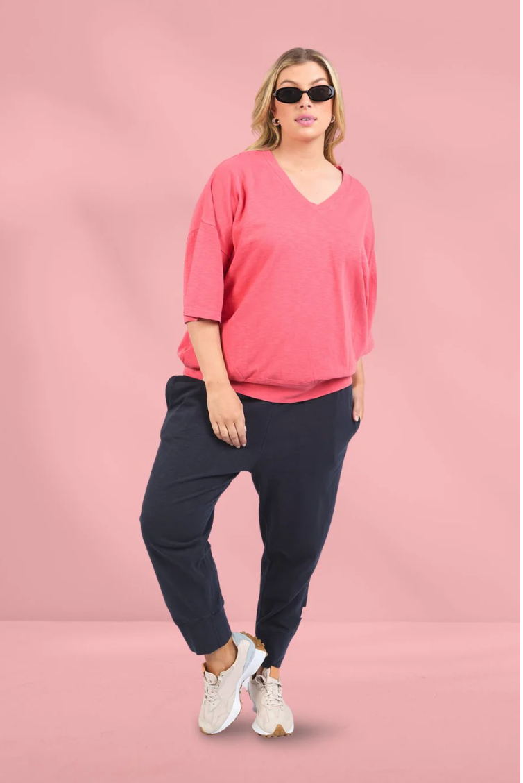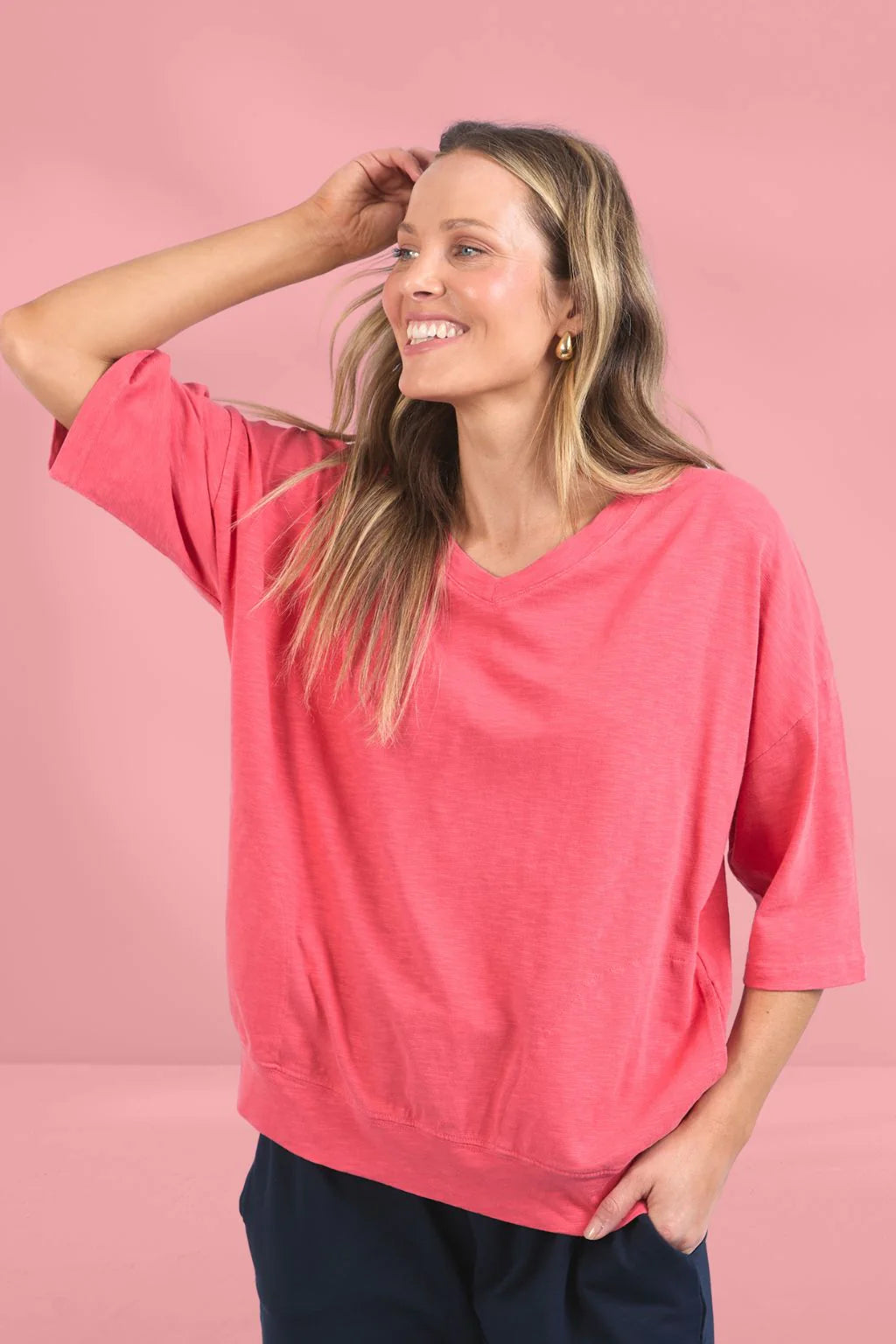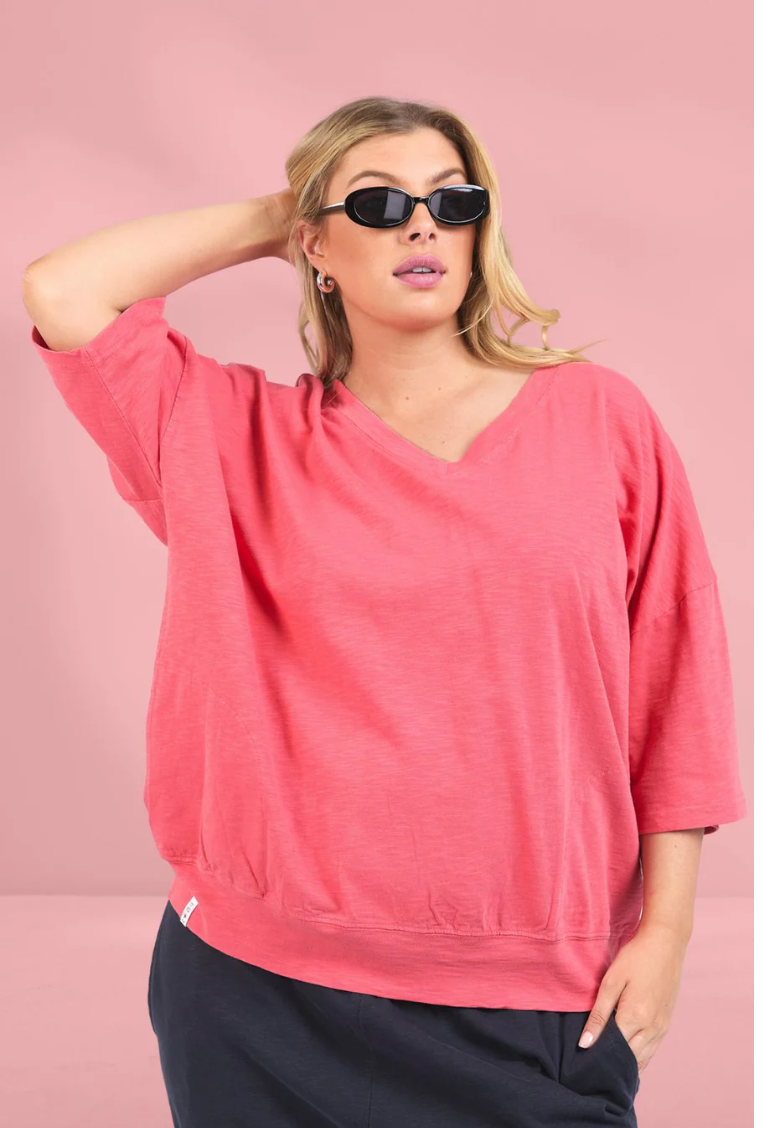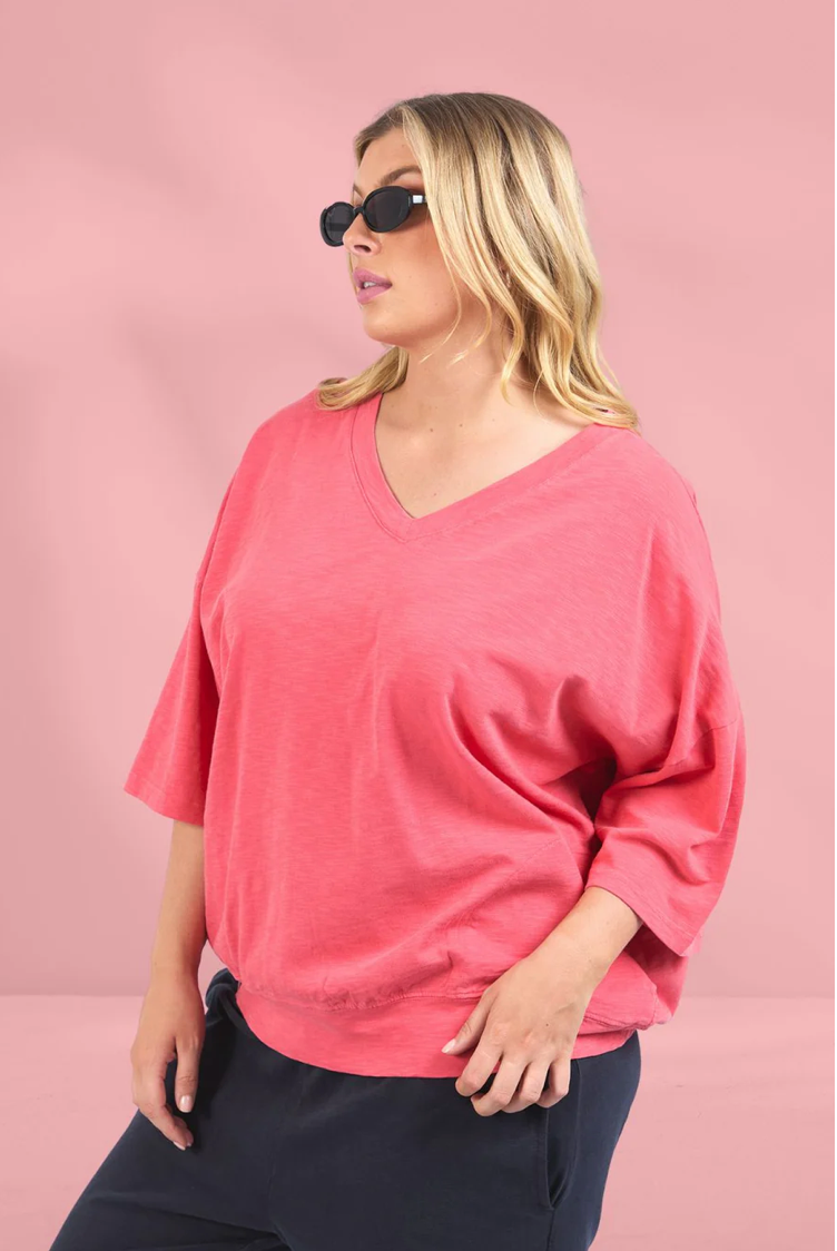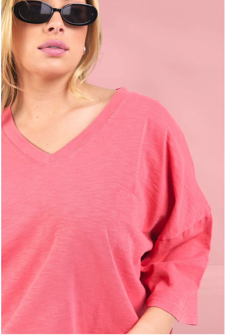 Our best selling Mazie has got a new neckline! Introducing the Mazie Vee Neck featuring a flattering vee neckline whilst keeping all it's style and versatility. This oversized fit and ¾ length sleeves allow plenty of room for movement, and the gorgeous lightweight cotton fabric make it ideal for layering.