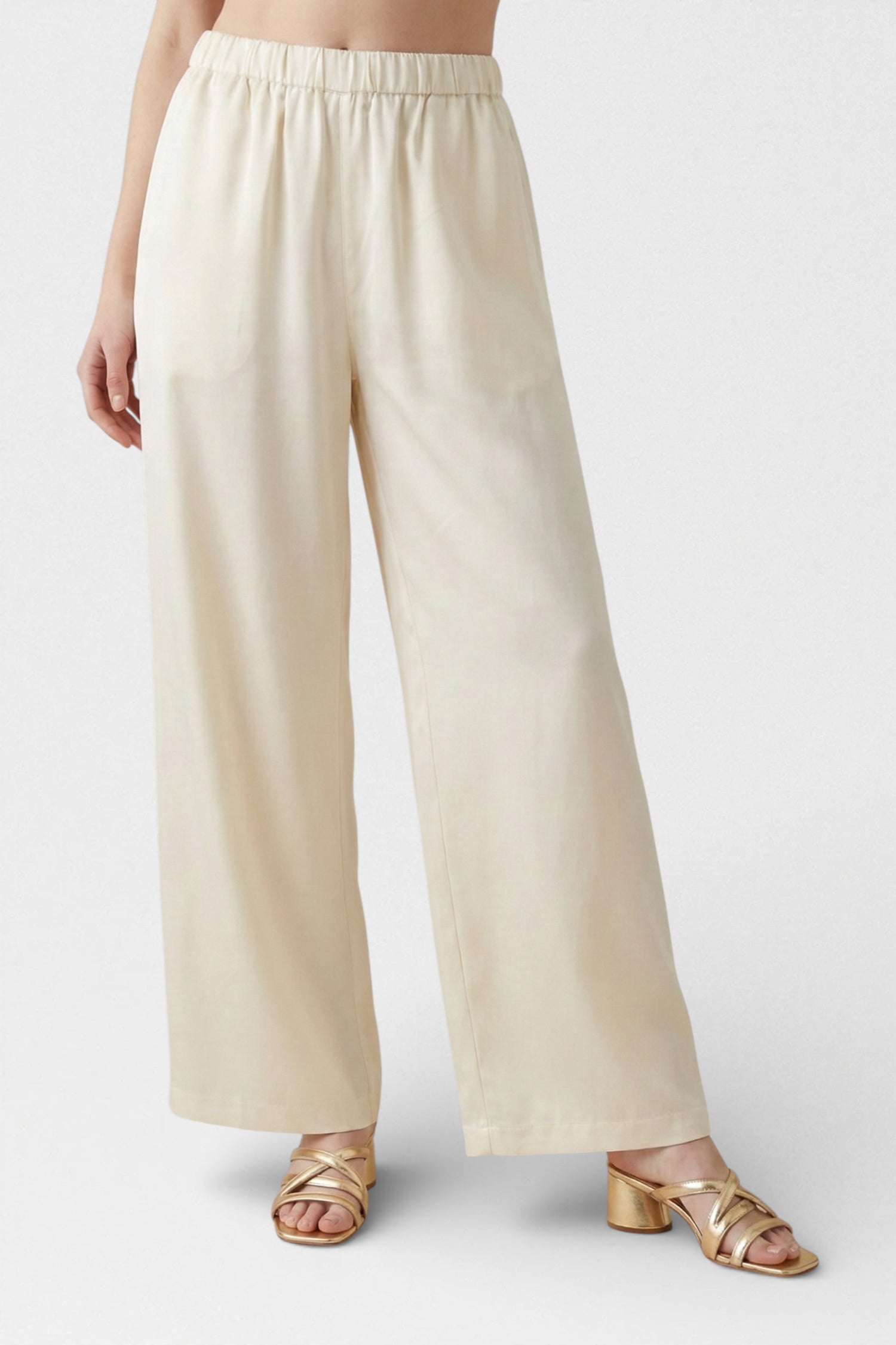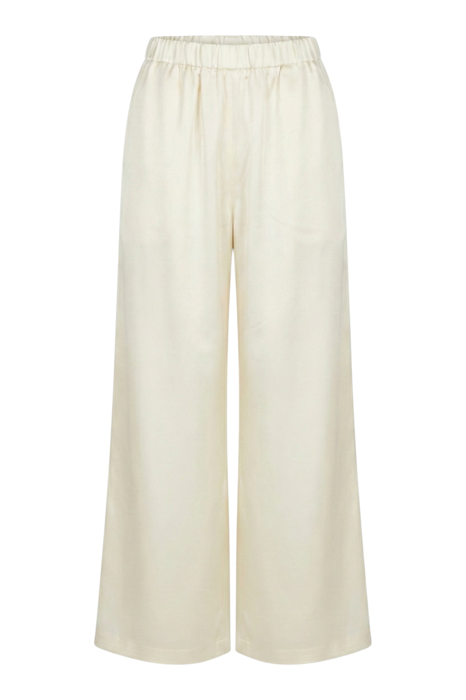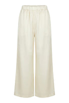 Indulge in the luxurious comfort and versatility of the M.A.Dainty Brulee Pants in cream silk. With a stretchy waist and full length design, these pants are perfect for any occasion, whether it's dressed up with heels or dressed down with sneakers. Feel light and airy all day long in these stylish and comfortable pants.