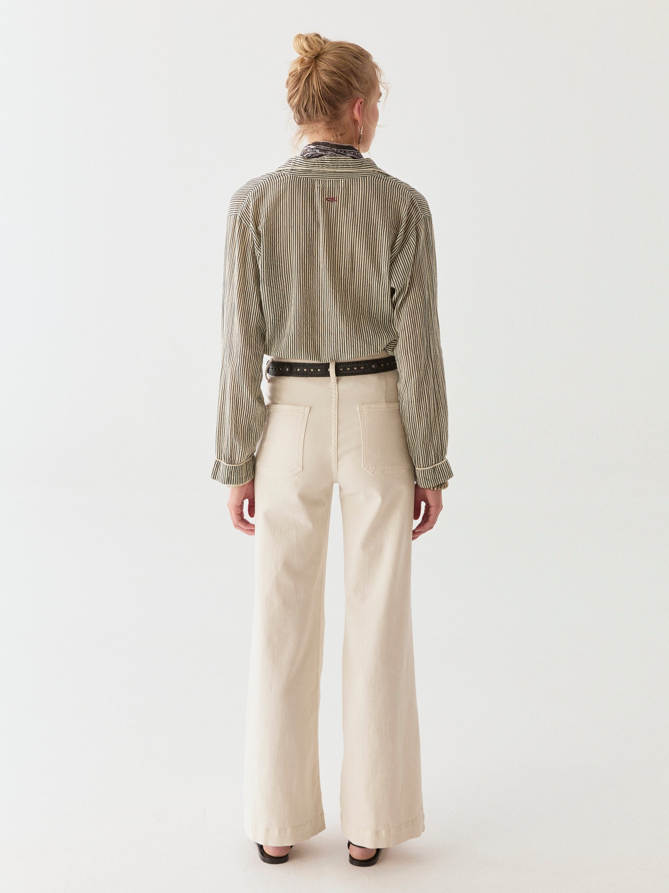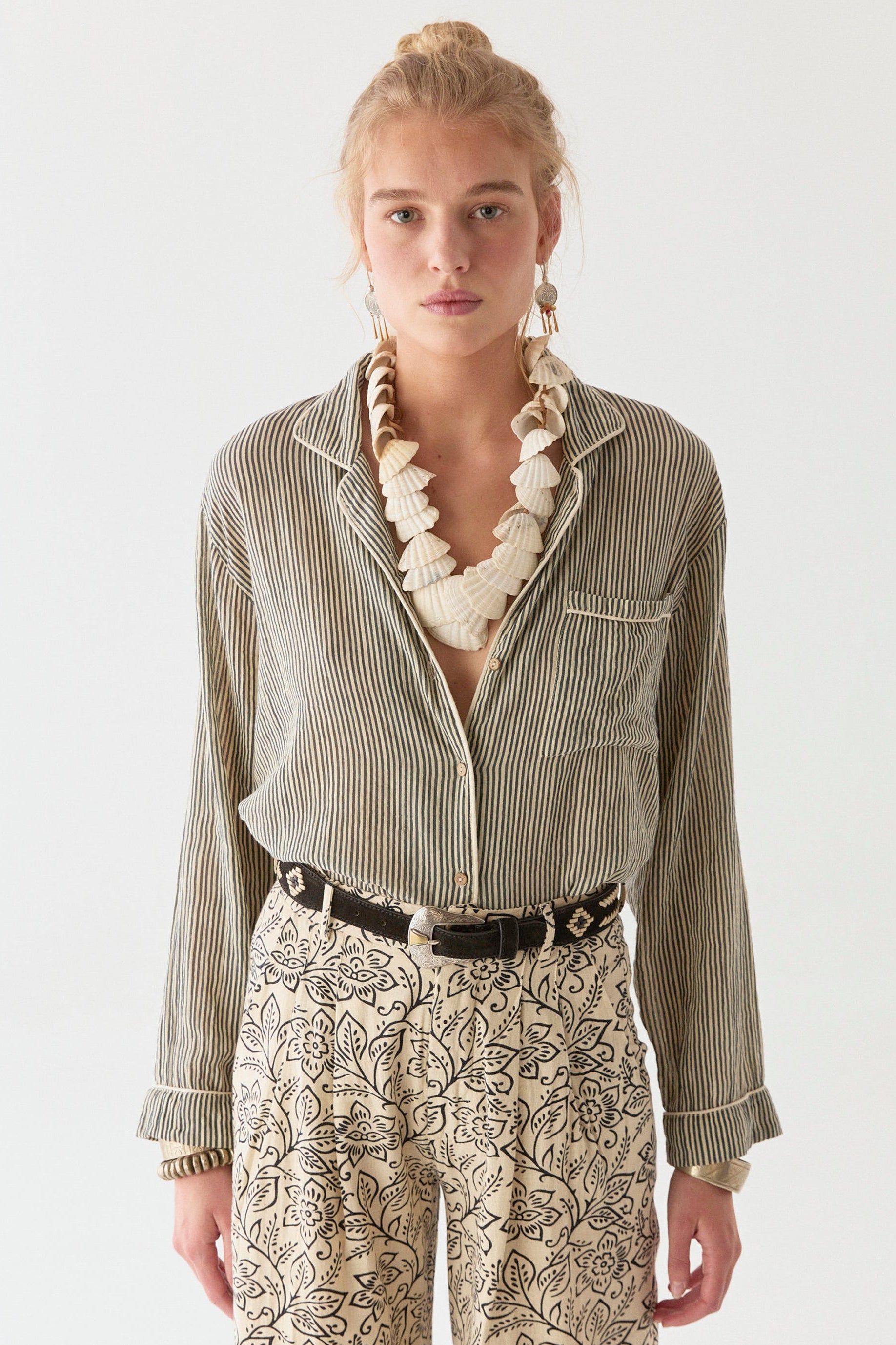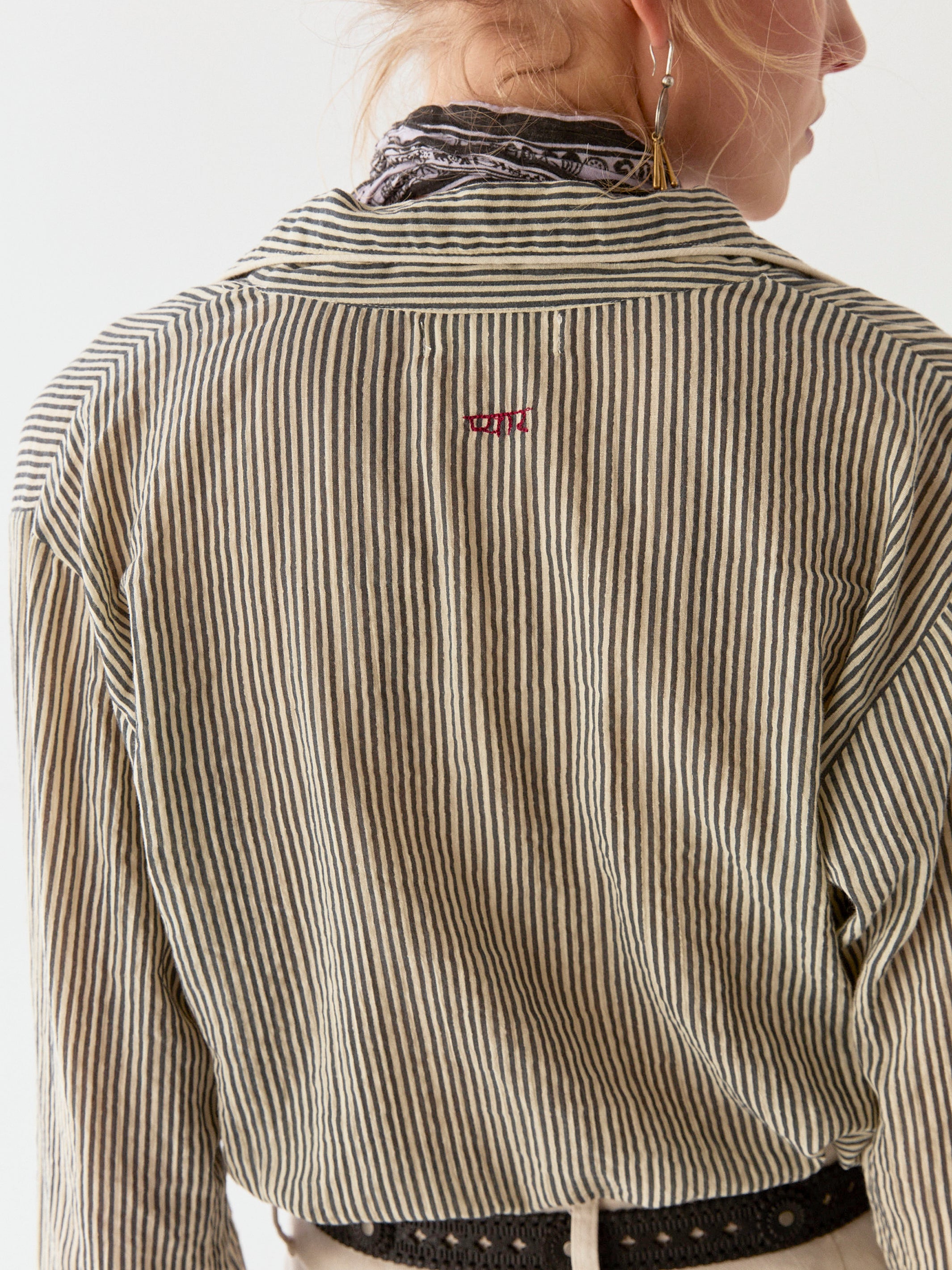 The Dodo Blouse walks the line between old-world charm and modern irreverence. Its relaxed, pajama-style fit carries an understated ease, while the marine stripes evoke something timeless yet strikingly raw. This is vintage stripped of sentimentality—bold, unpolished, and meant to be lived in.