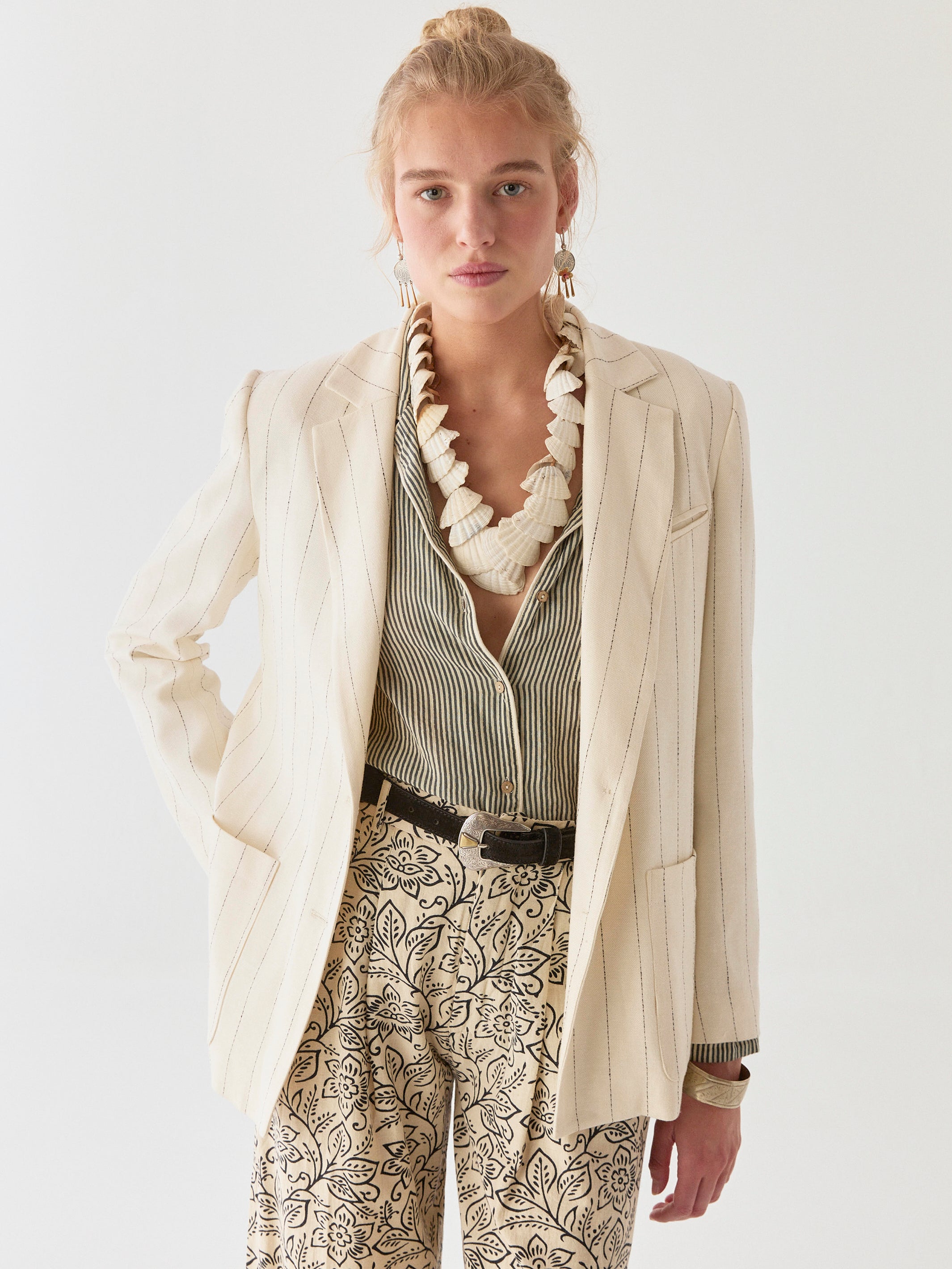 Paired here with Hugo Pant, where florals bloom and straps play—because contrast makes everything better.