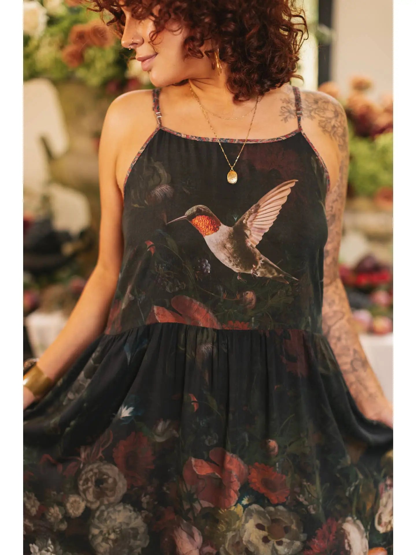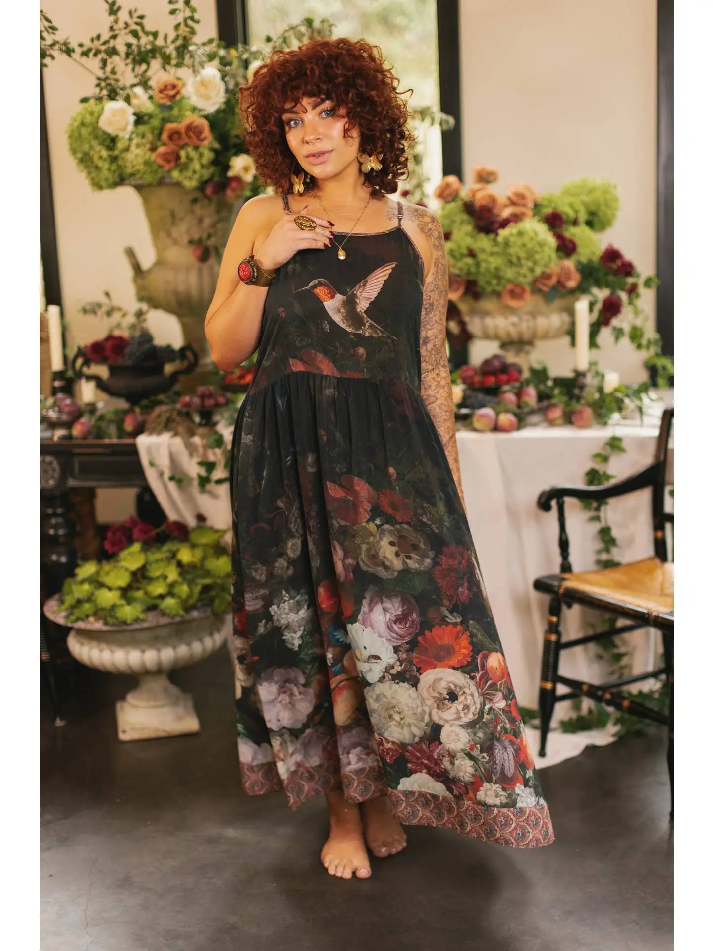 Flight of Fancy Bohéme Long Maxi Slip Dress w/Hummingbirds