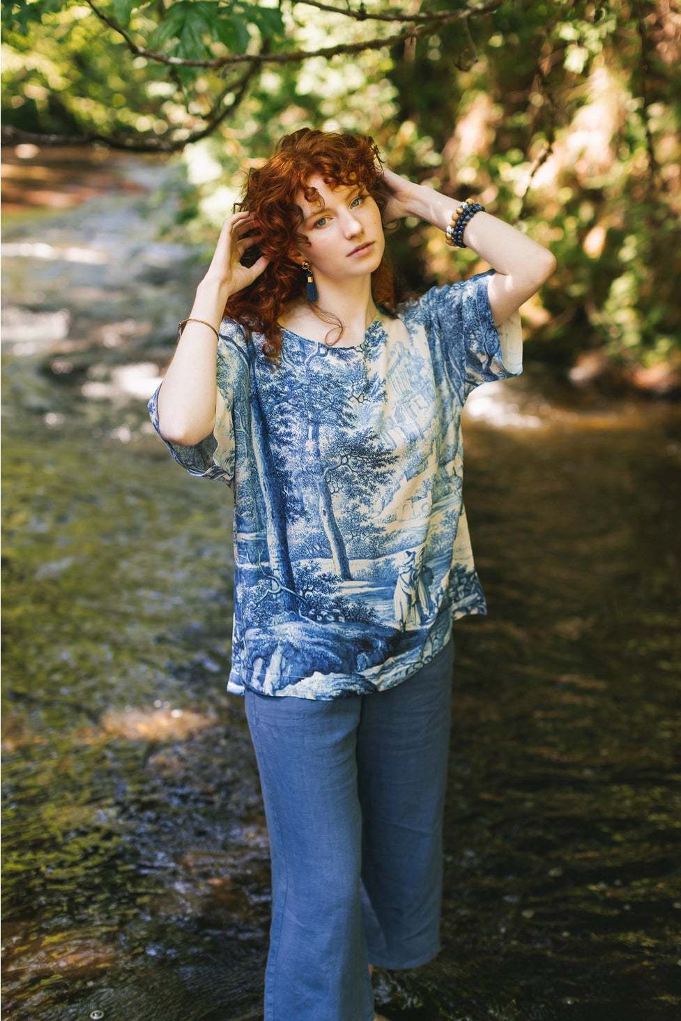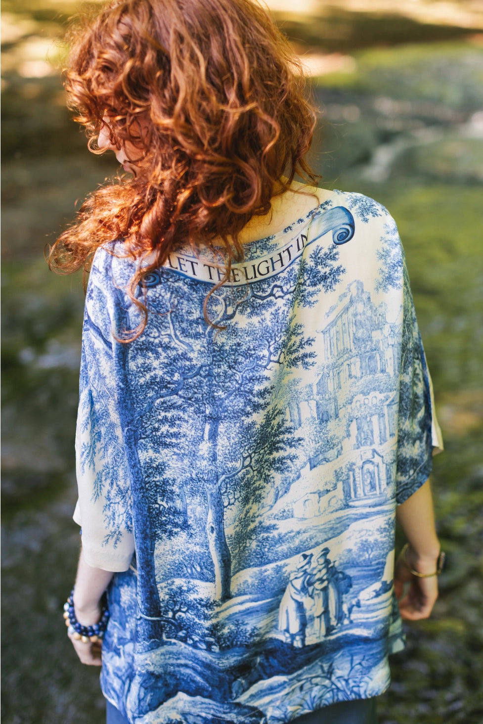 Let the Light in Luxe Tee Tunic Shirt | Blue Delft Toile