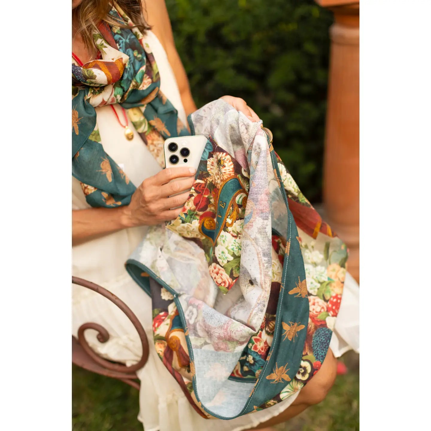 Stay Gold Boho Linen Tote Bag | Rabbits, Flowers & Bees