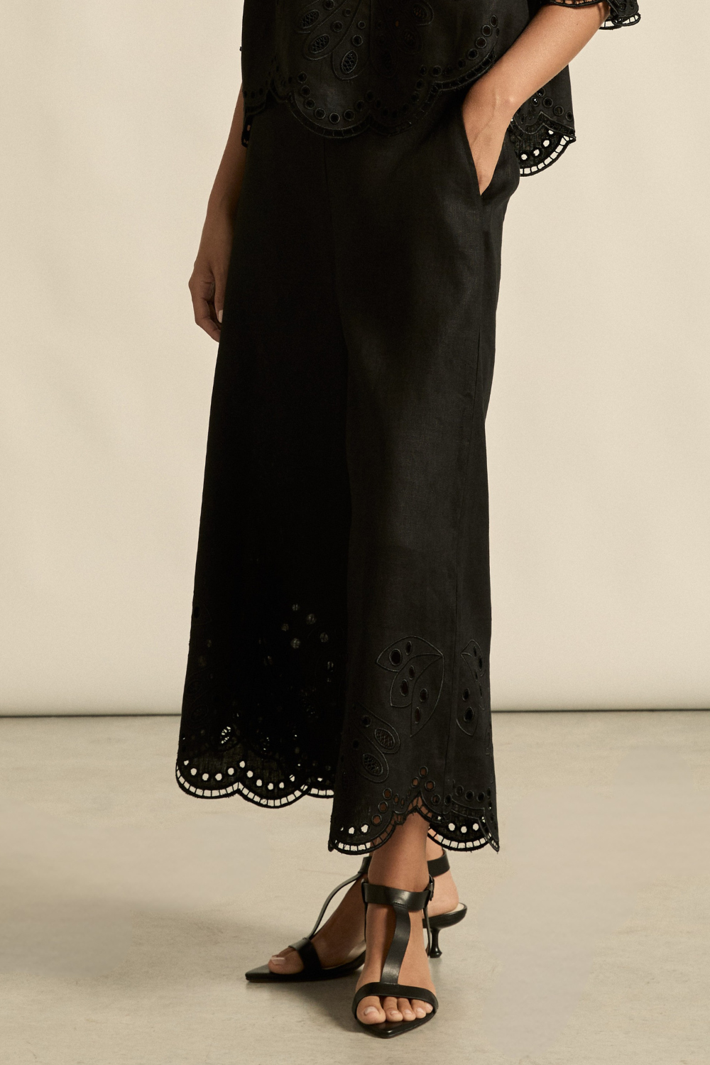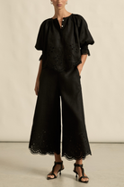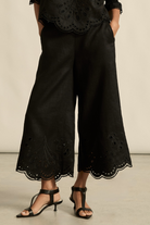 Embroidered with a delicate floral motif and finished with a scalloped hem, the Apprise Pant offers a refined take on vacation dressing. Crafted from a lightweight, breathable fabrication, this style balances ease with intricate detailing. The high-waisted, cropped wide-leg silhouette flatters effortlessly, while the elasticated back waistband ensures comfort. Complete with functional side pockets and a side zip closure, it’s an easy yet elevated piece—perfectly paired with the Dawn Top for a coordinated, vacation-ready look.