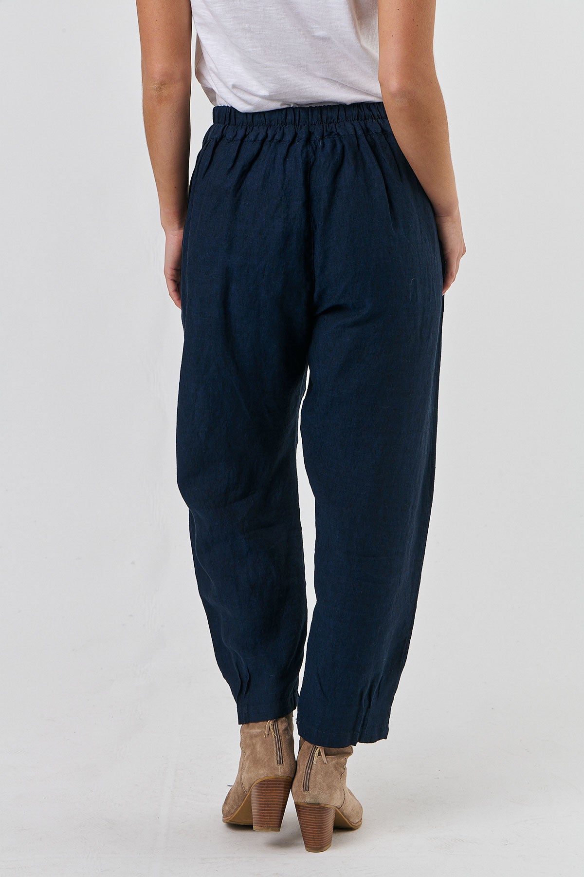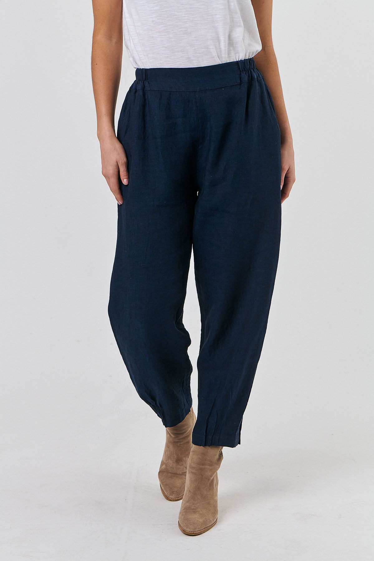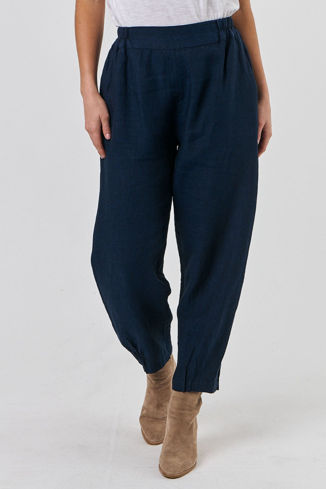 A feminine take on the season's utility pant. Made from 100% Linen and designed to fall just above the ankle.