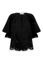 - Bespoke floral embroidery at the hem and sleeves for artisanal detail