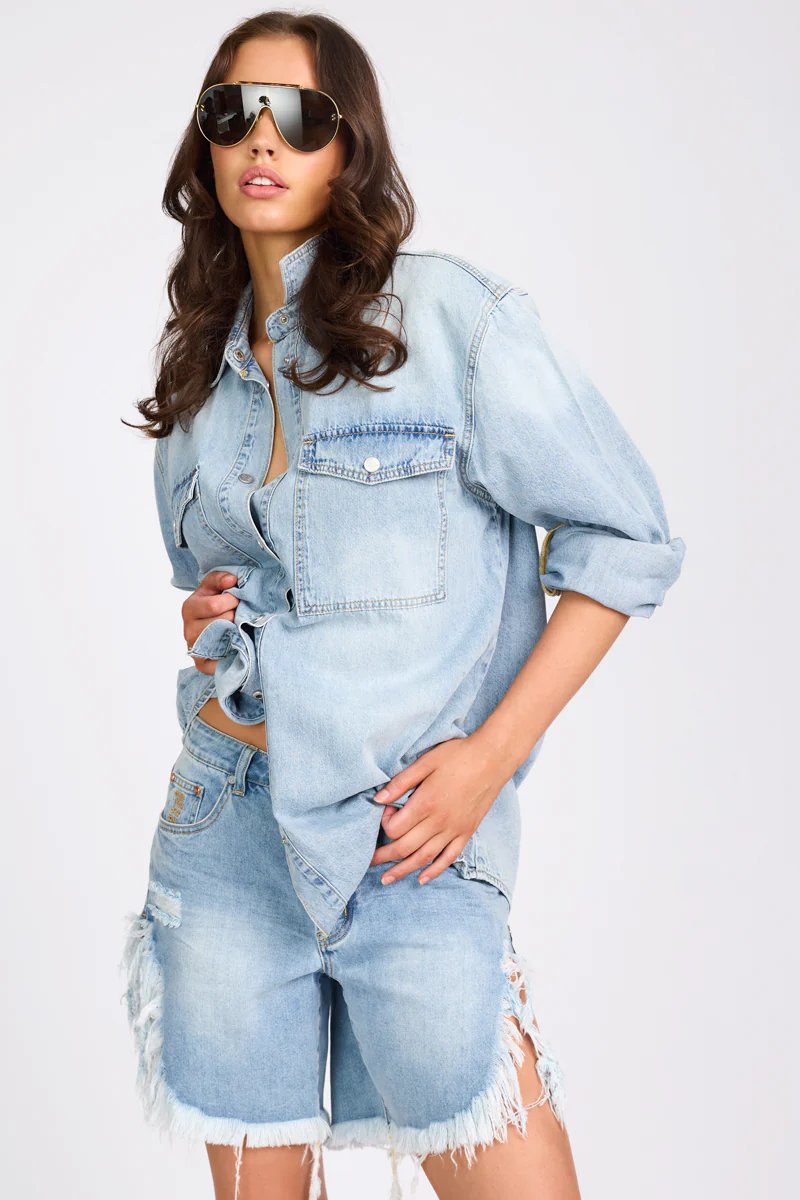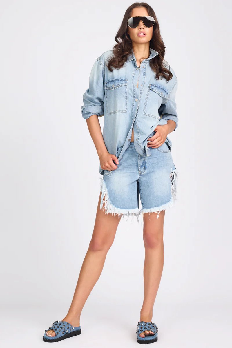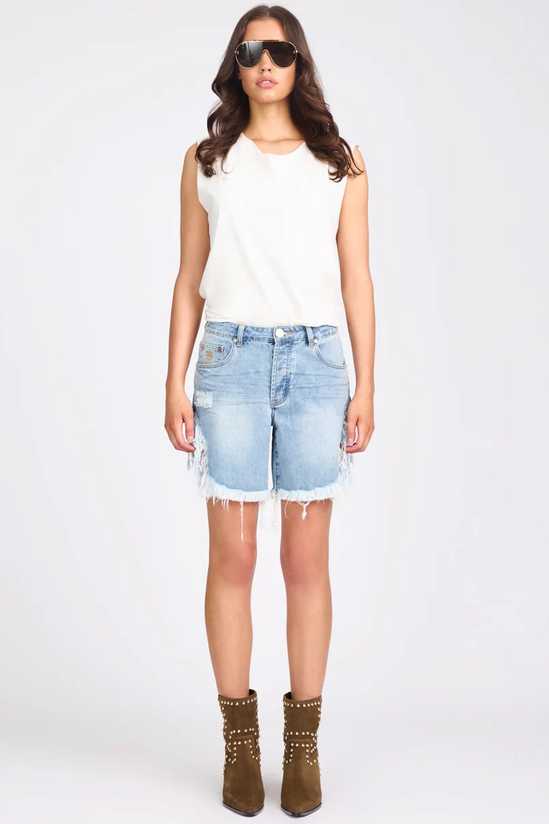 Frankies High Waist Long Length Denim Shorts | Santa Cruz Blue