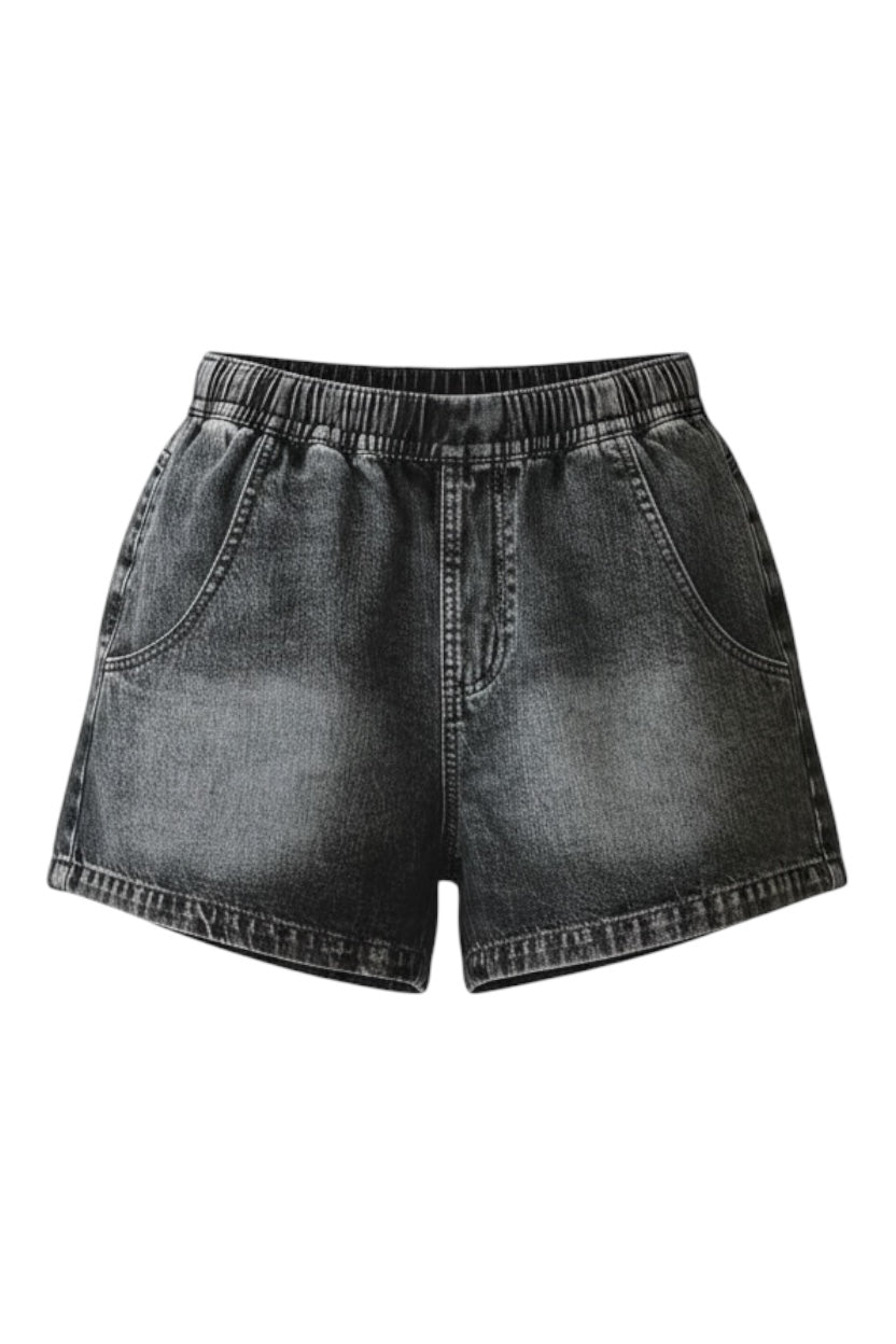 Funks High Waist Elasticated Flippy Denim Shorts | Charcoal Black