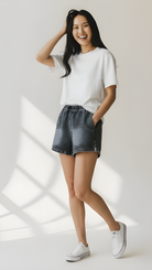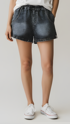 The CHARCOAL BLACK FUNKS HIGH WAIST ELASTICATED FLIPPY DENIM SHORTS are easy, feminine, and endlessly fun.