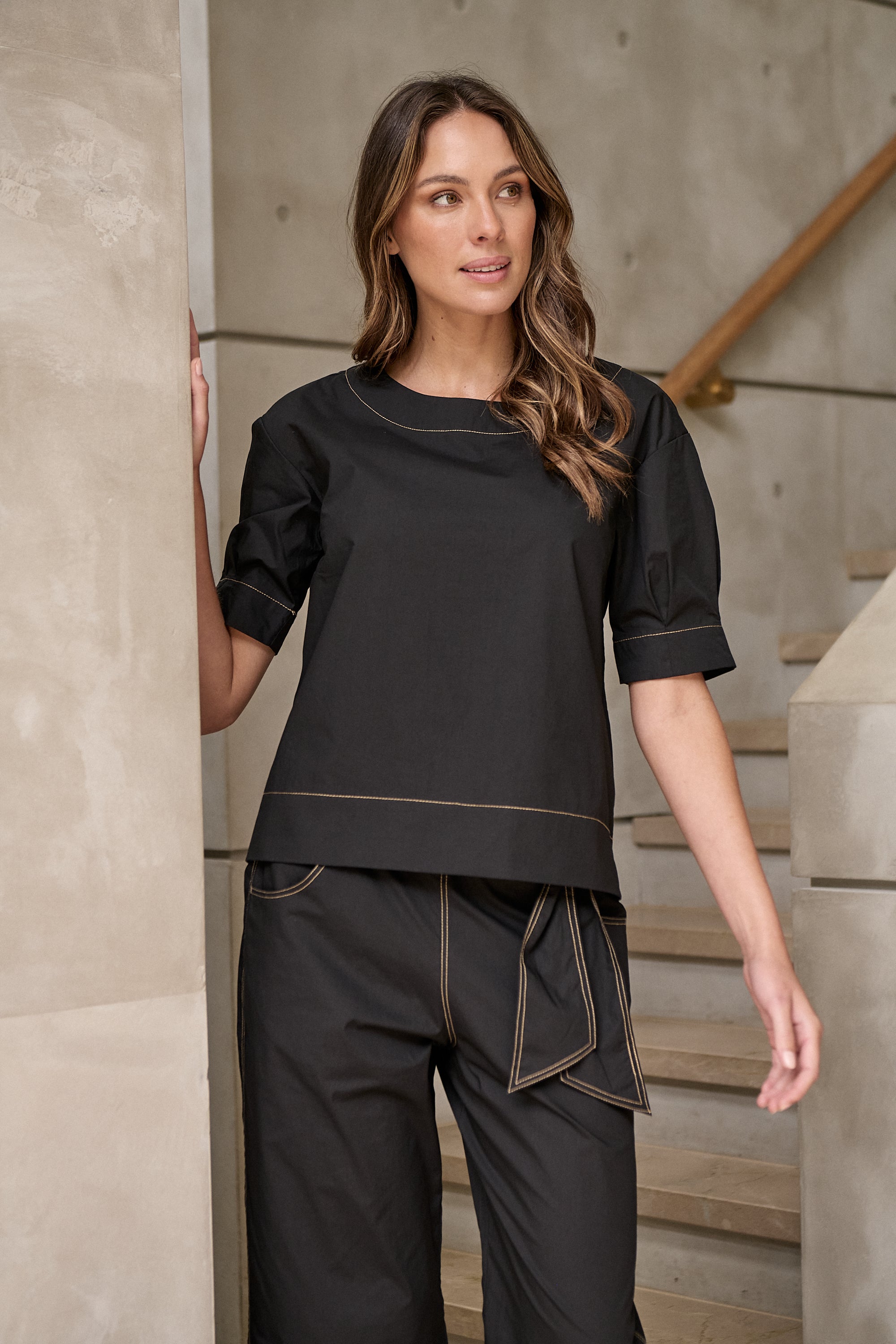 GA623 Cotton Poplin Top | Black