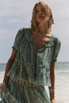 Forever femme in a frilly, floral-printed design, this stunning set features a tiered short-sleeve top and coordinating high-rise tiered maxi skirt for the sweetest done-in-one design. Level up every look with this stand-out set, perfect to be paired together or styled separately for multiple ways to wear.