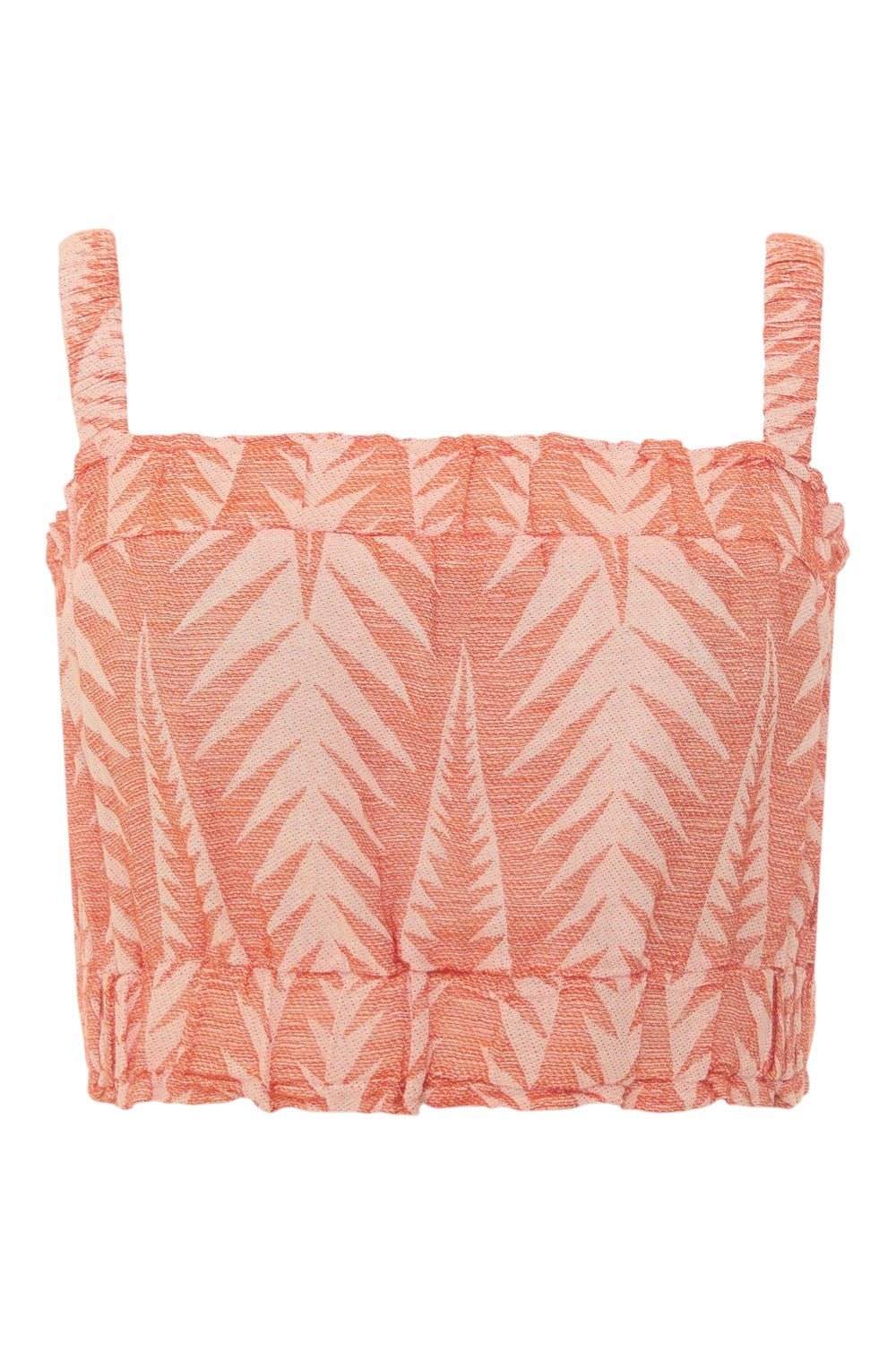 - Cropped top with V-neckline, short ruffle sleeves and adjustable tie-back closure