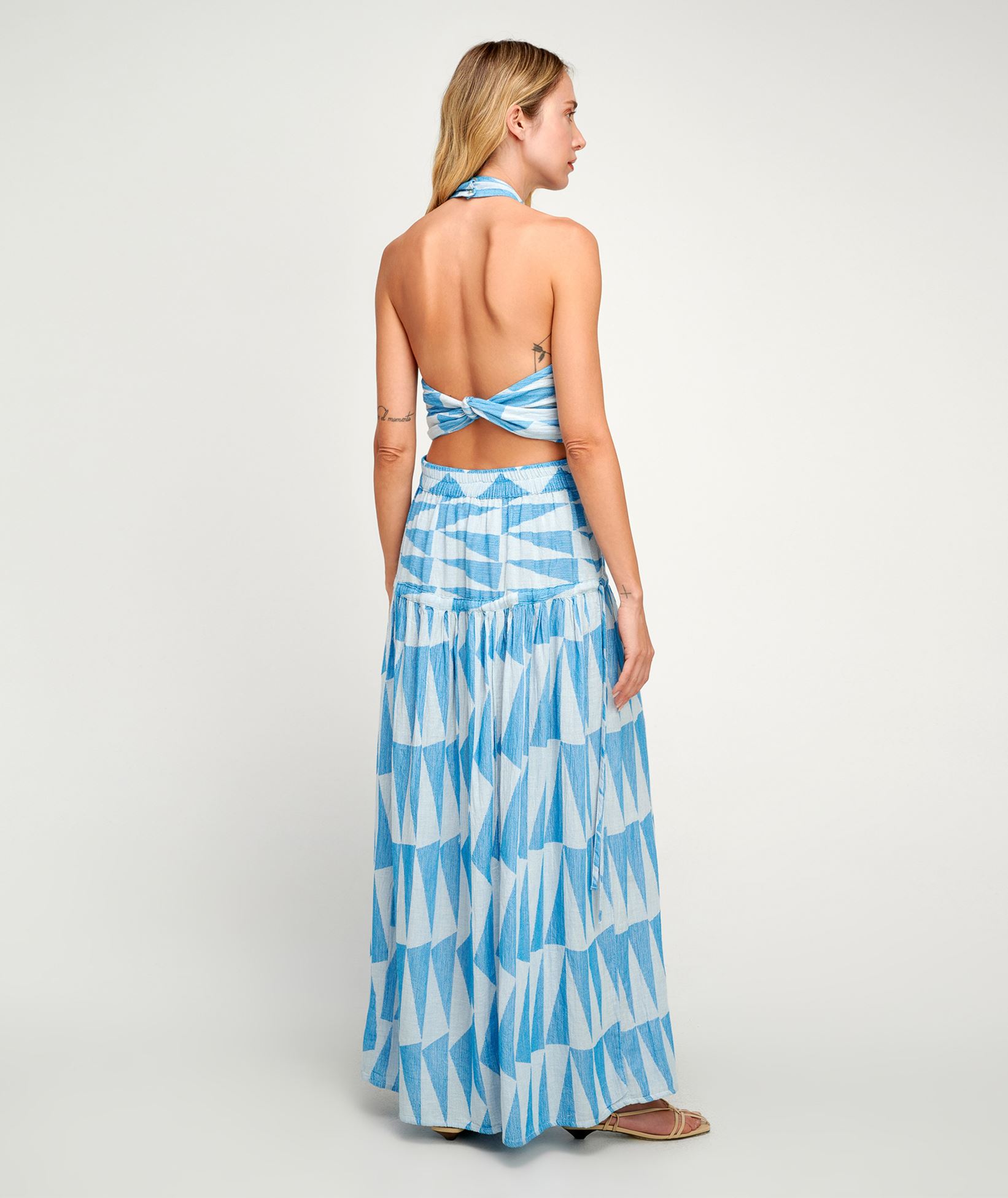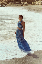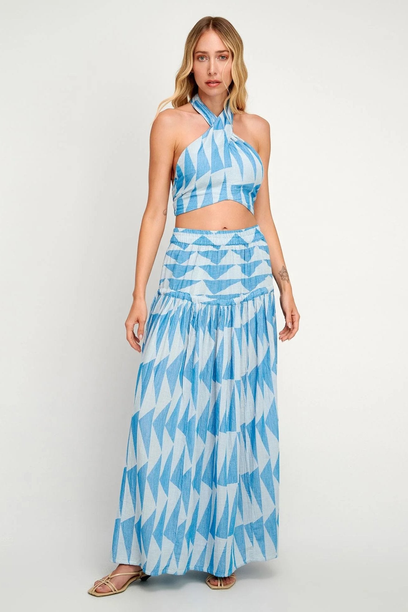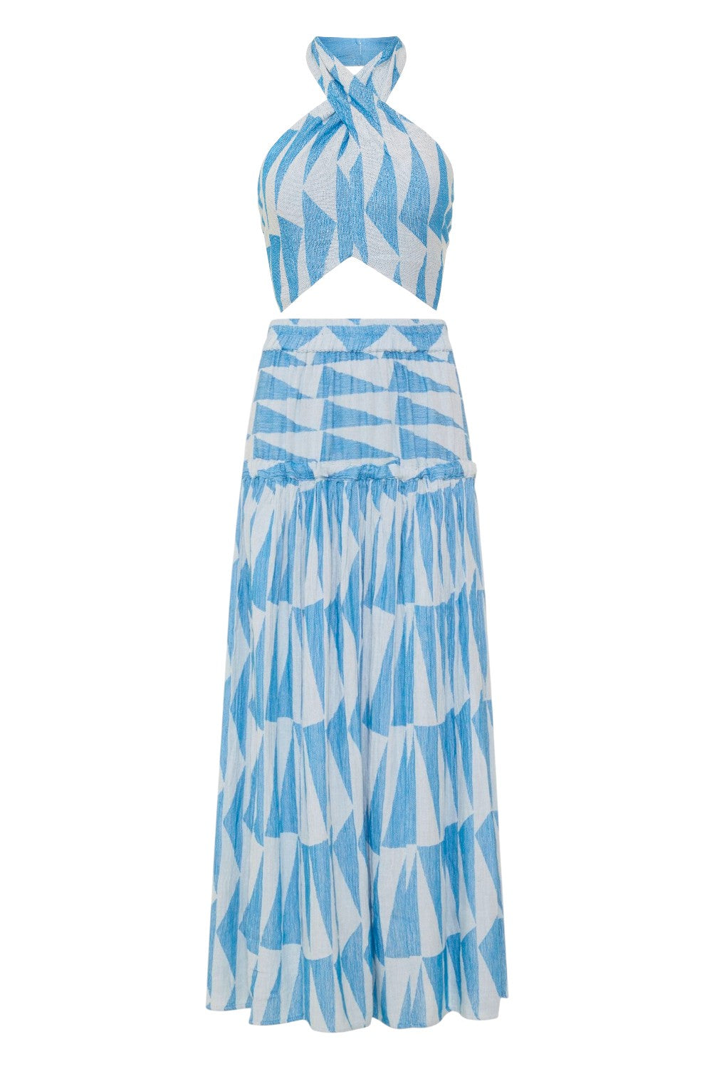 Zakar Halter Neck Crop Top & Skirt Set | Paros Blue