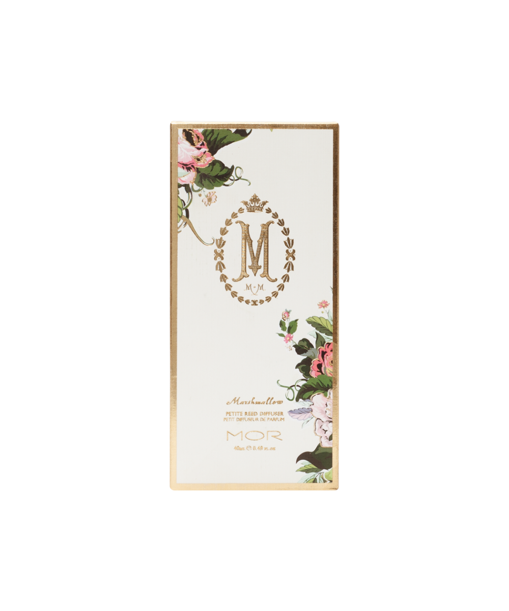 Opulent floral decadence entwined with the elegance of English Rose and Snow Musk exudes from this exquisite petite Reed Diffuser. Complete with Black Reeds and adorned with a tassel, let the mesmerising scent of Marshmallow gloriously rapture and add a nostalgic ambience to any space.