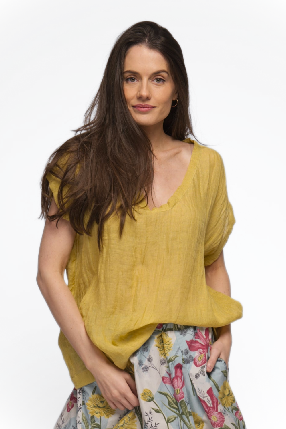 The simplicity of the Imogen Gauze Tee speaks for itself. As comfortable as a well-worn tee-shirt, the loose-fitting gauze tee crafted from a linen gauze, boasts a slight V neck, extended shoulders, and flowing selvedge hem line. Simple perfection for those summer months.