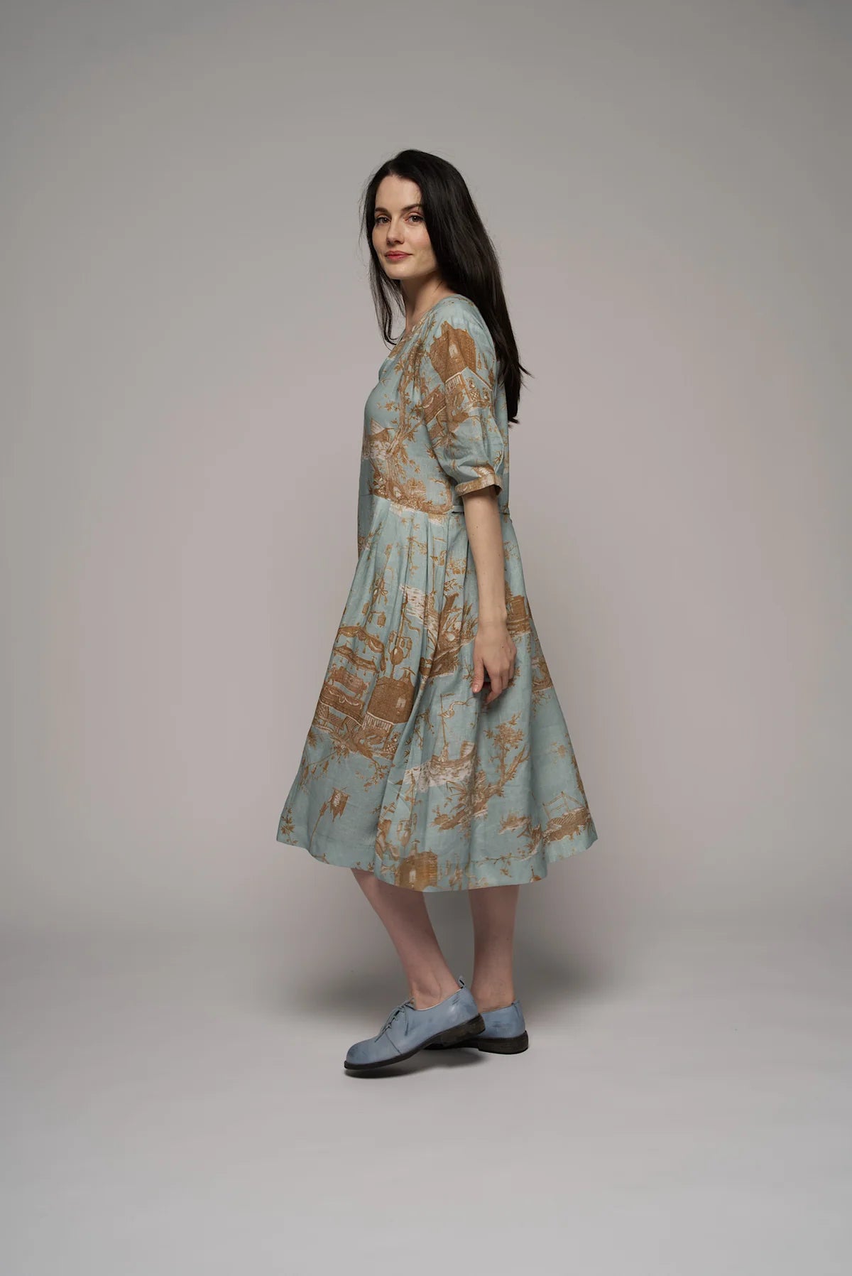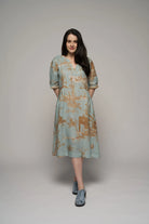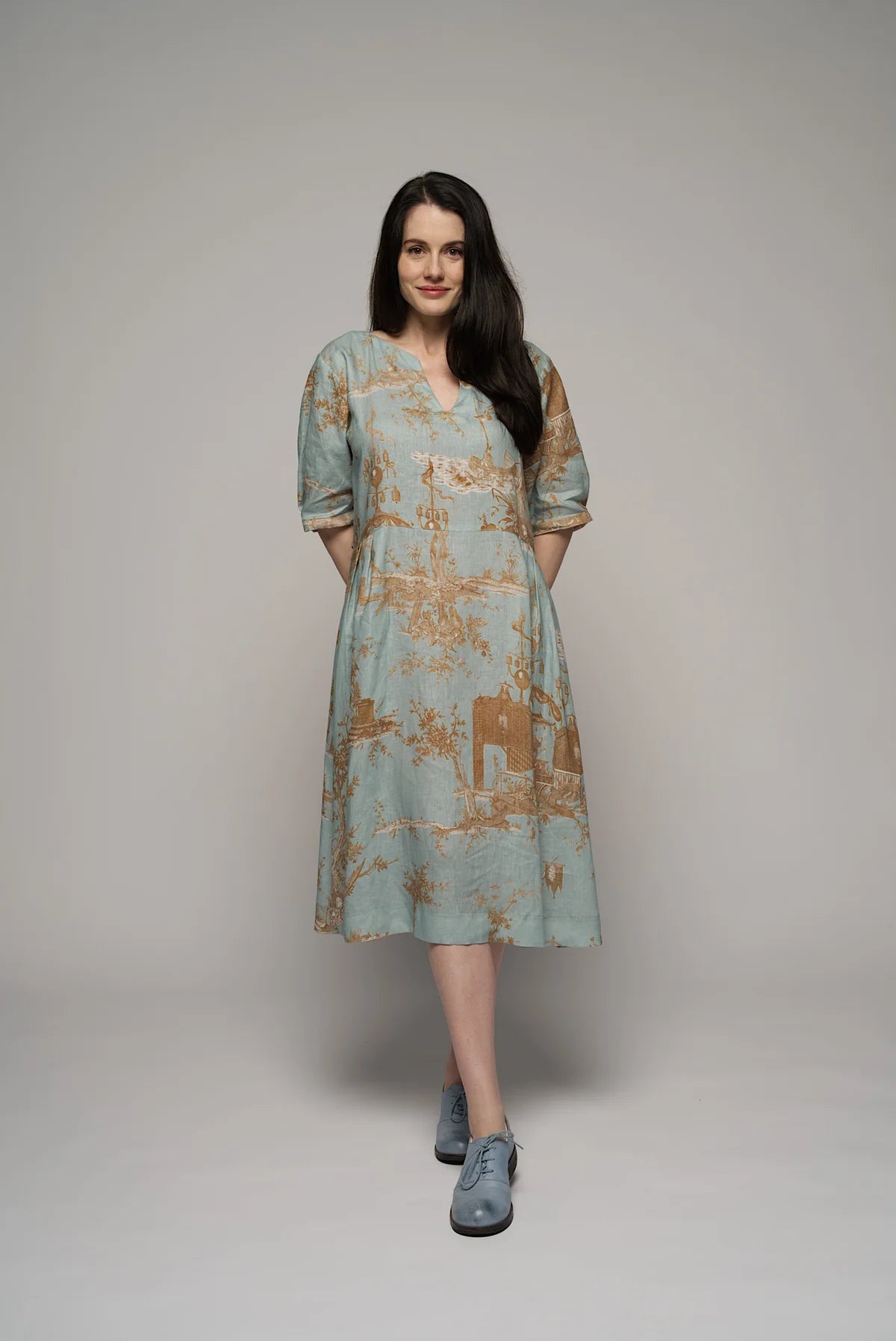 Fashioned from the delicate linen print, it features a slightly lengthened sleeve adorced with a tailored tuck and a flattering ope v-neckline.